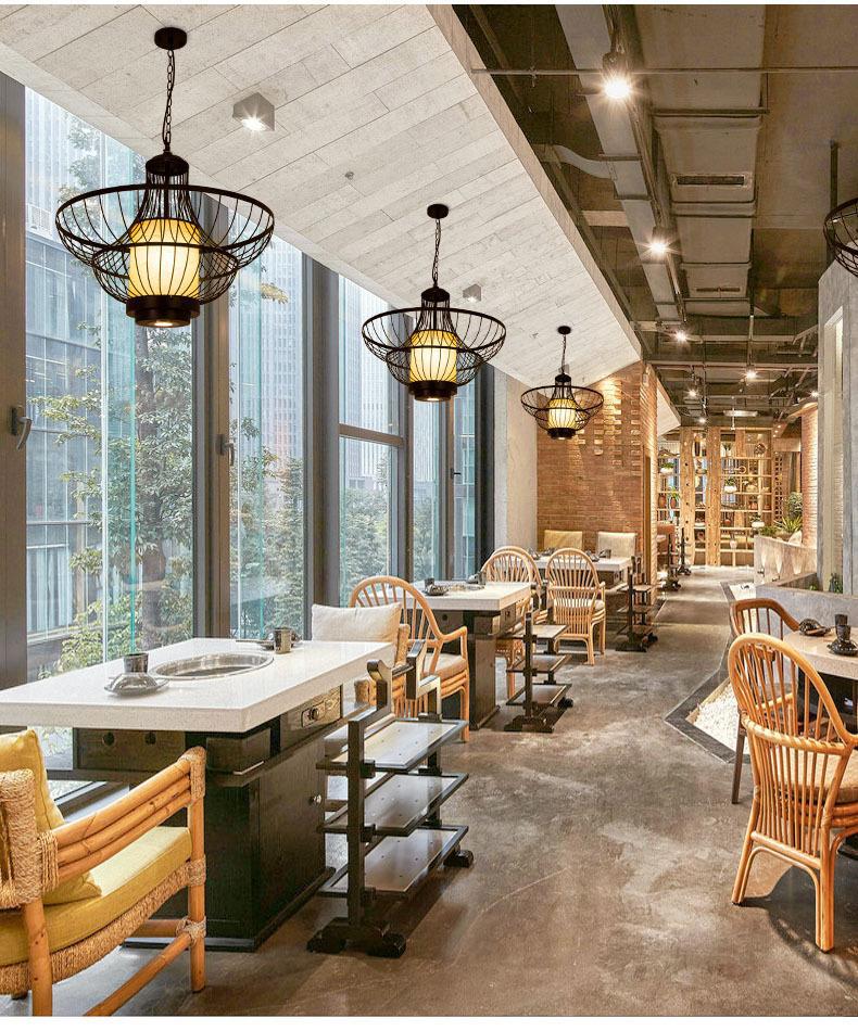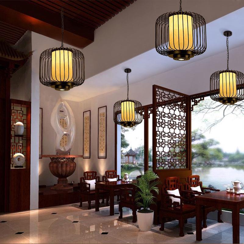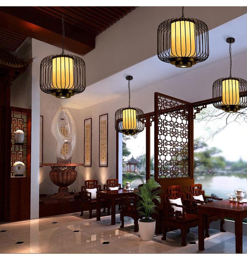 外贸专供新中式铁艺吊灯饭店火锅店灯禅意茶室鸟笼工程灯具