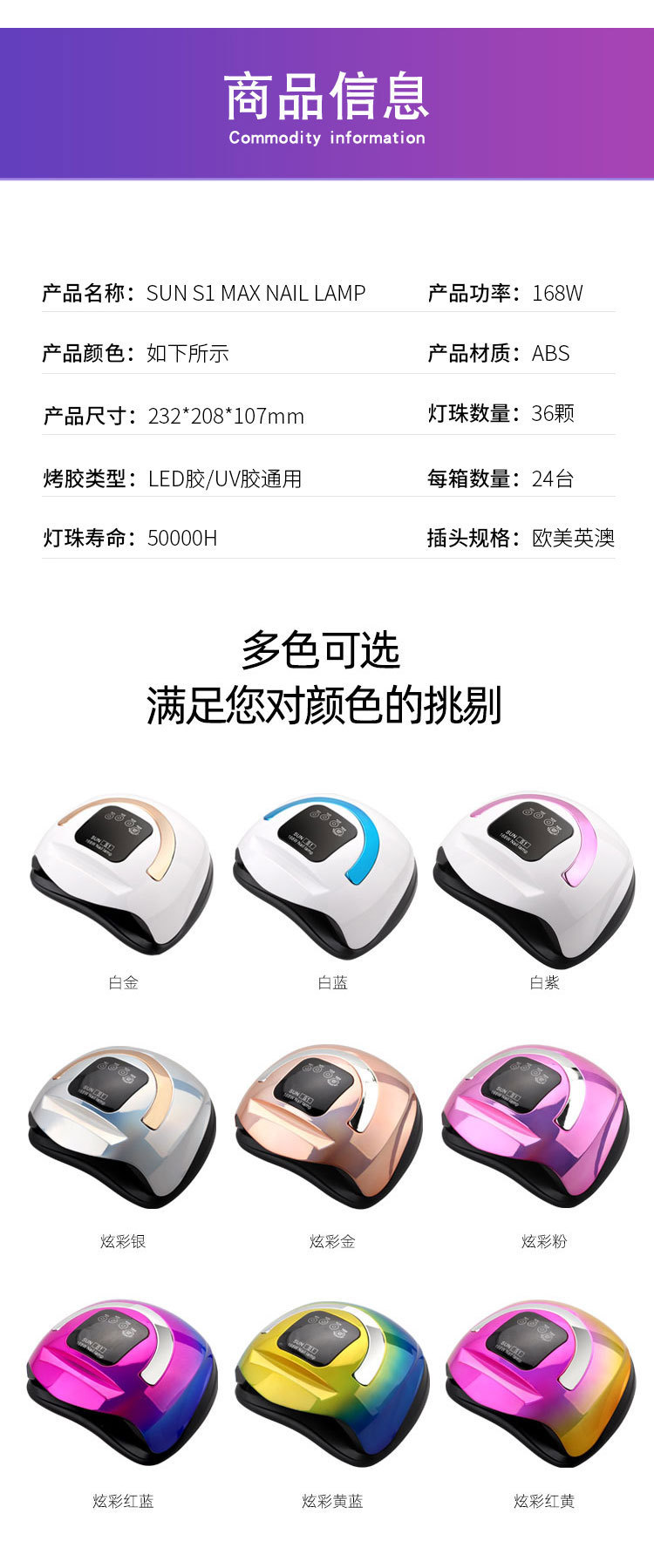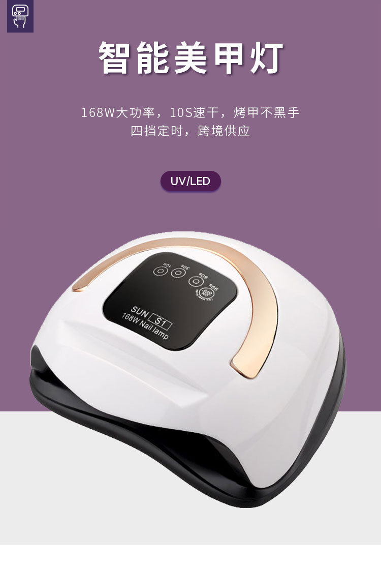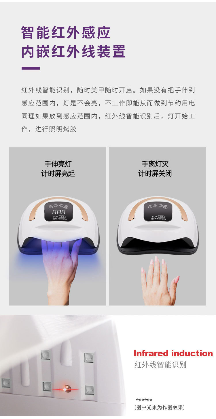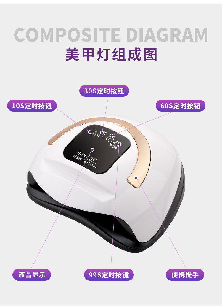 跨境新款美甲灯168W大功率手提式美甲光疗灯双光源智能指甲烘干机