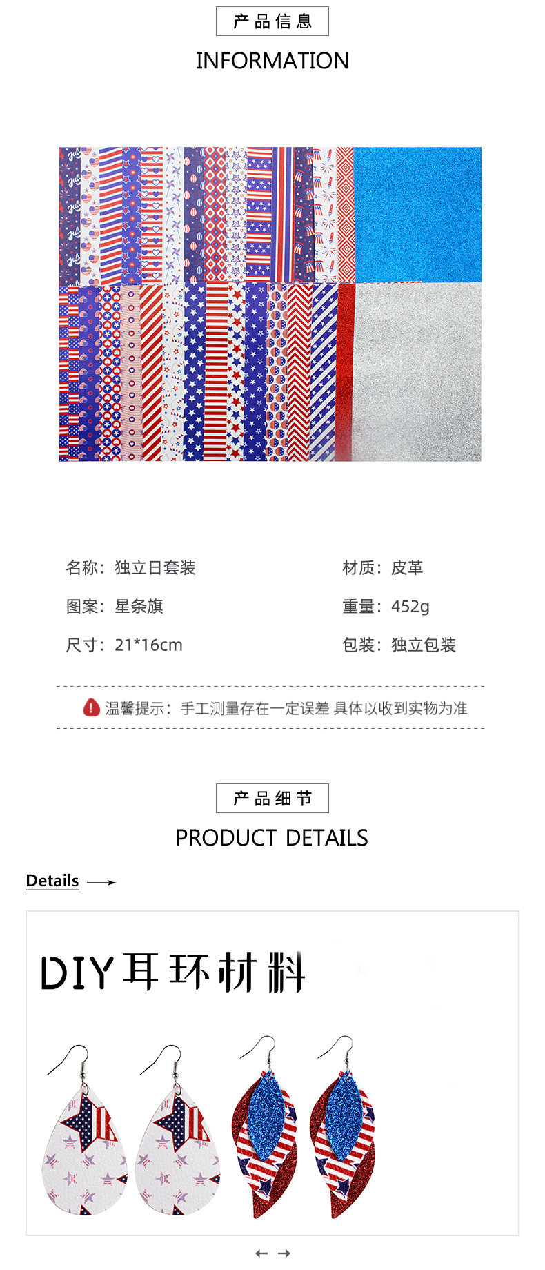 美国独立日星条旗皮革辅料套装DIY耳环发饰材料工具跨境亚马逊