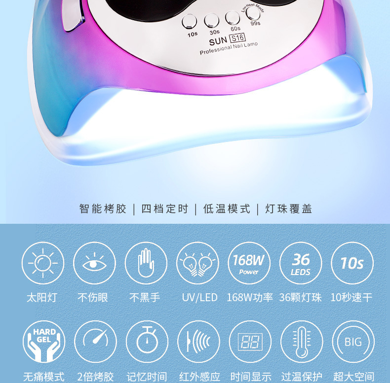 跨境新品美甲灯36颗高功率168W提手光疗灯UV/LED指甲烤灯烘甲机