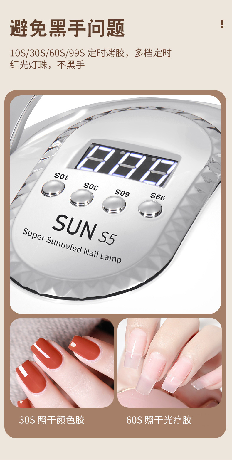红光美甲灯S5新款美甲光疗灯手提式速干不黑手美甲烘干机烤灯批发