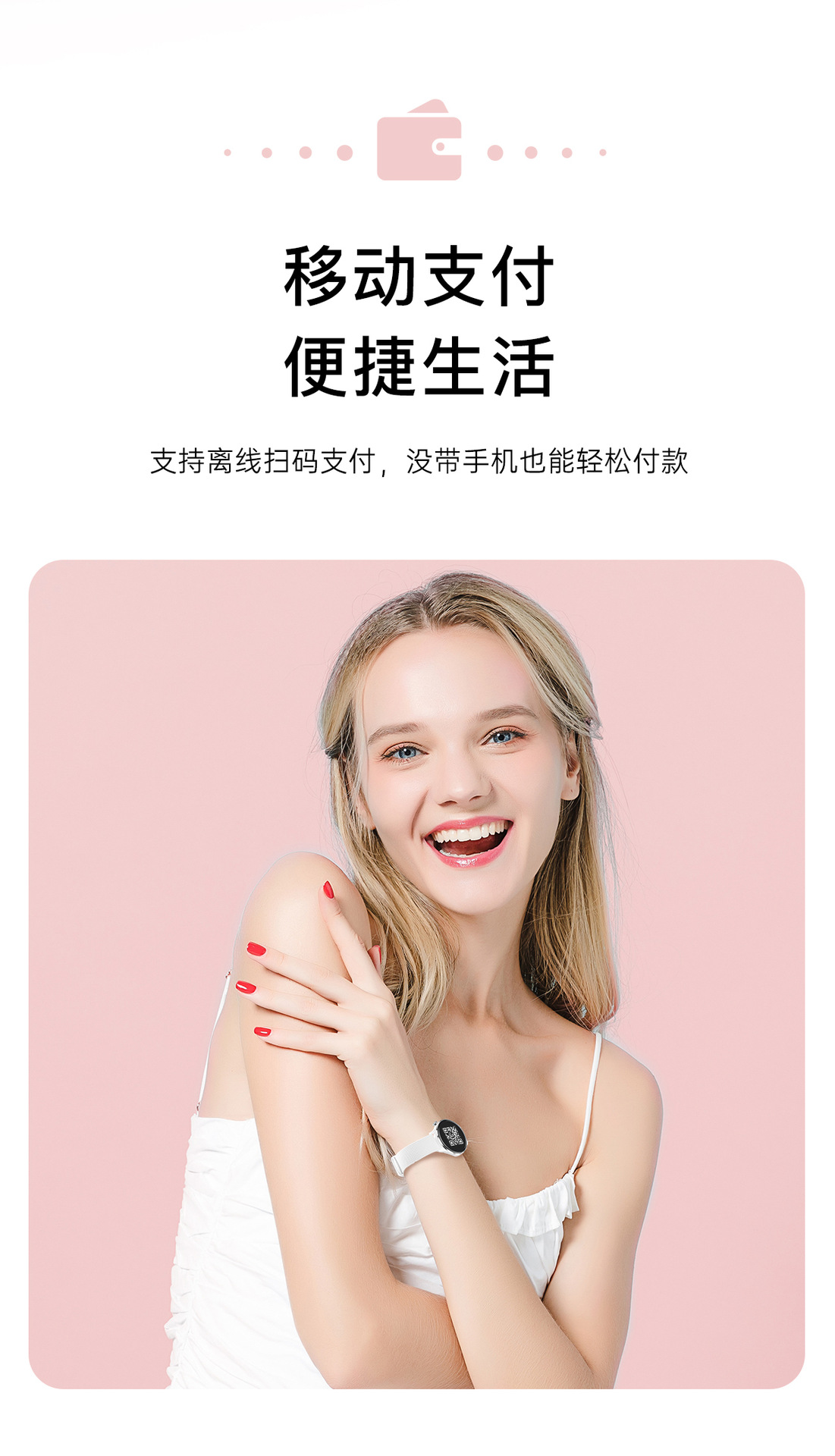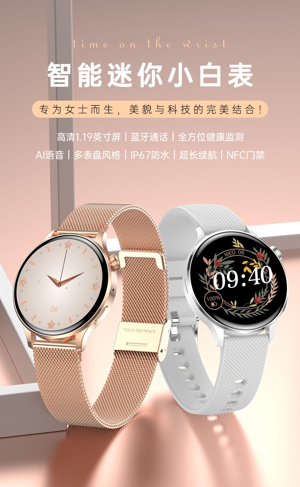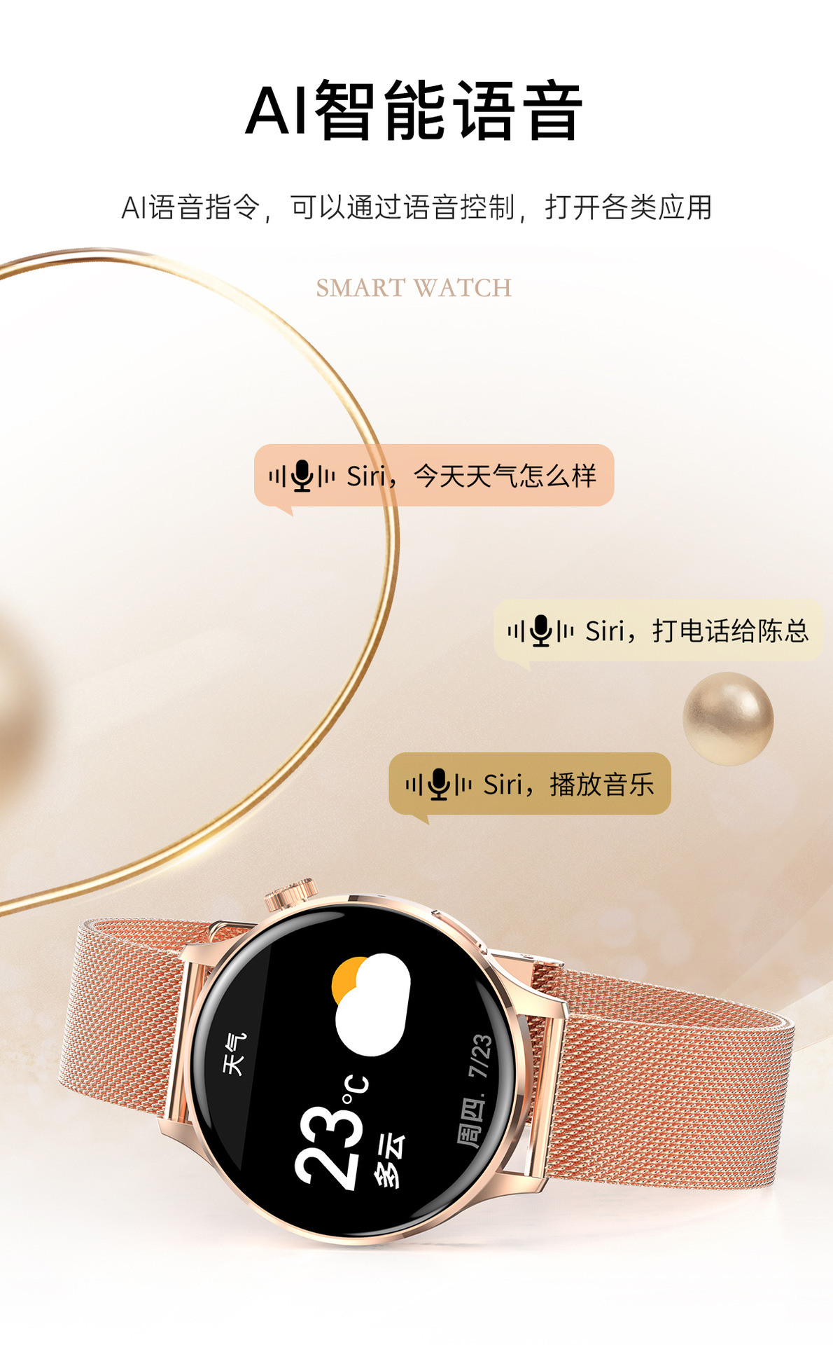 新款女性专用智能手表离线支付NFC语音助手锌合金机身运动检测