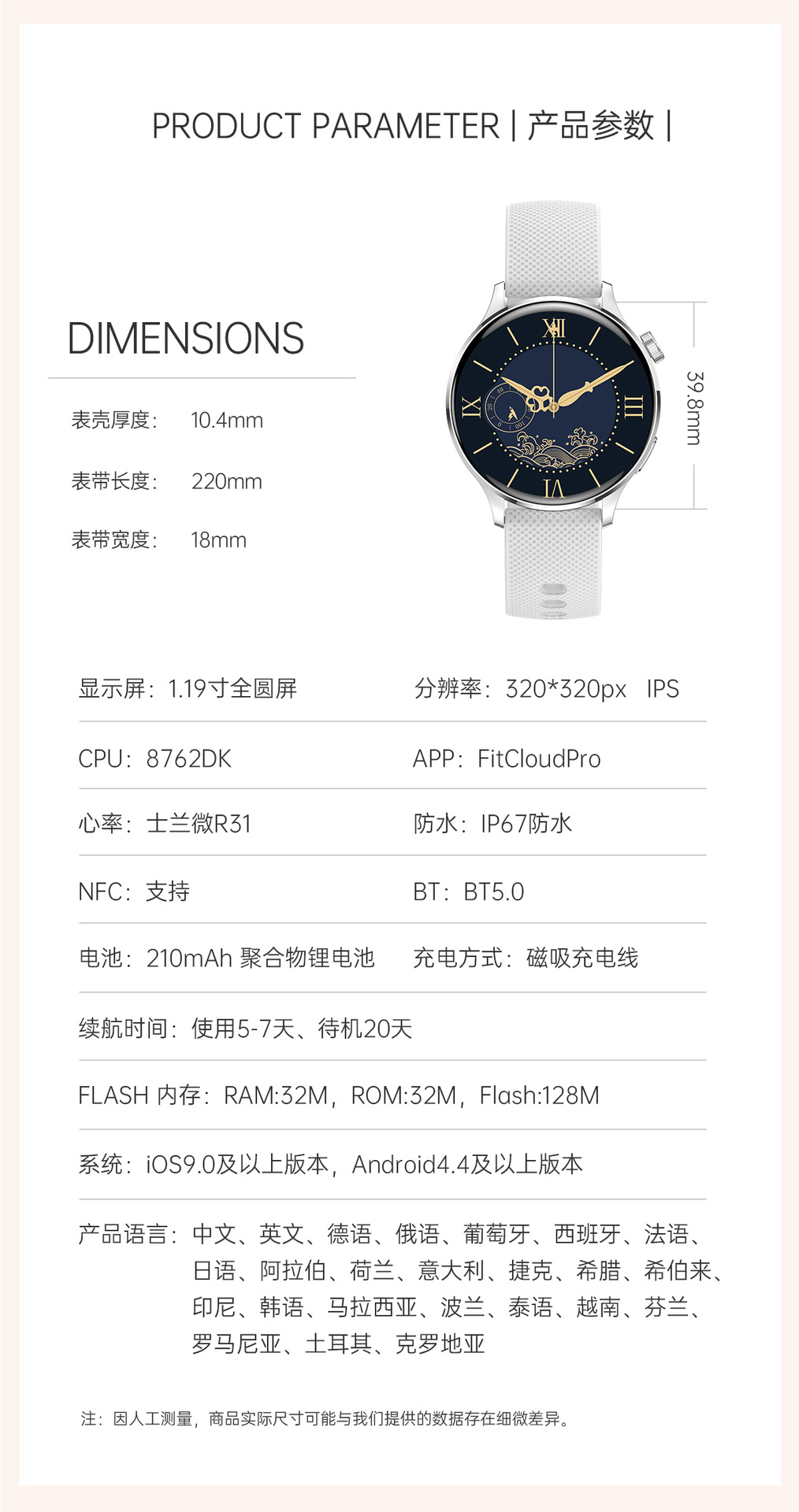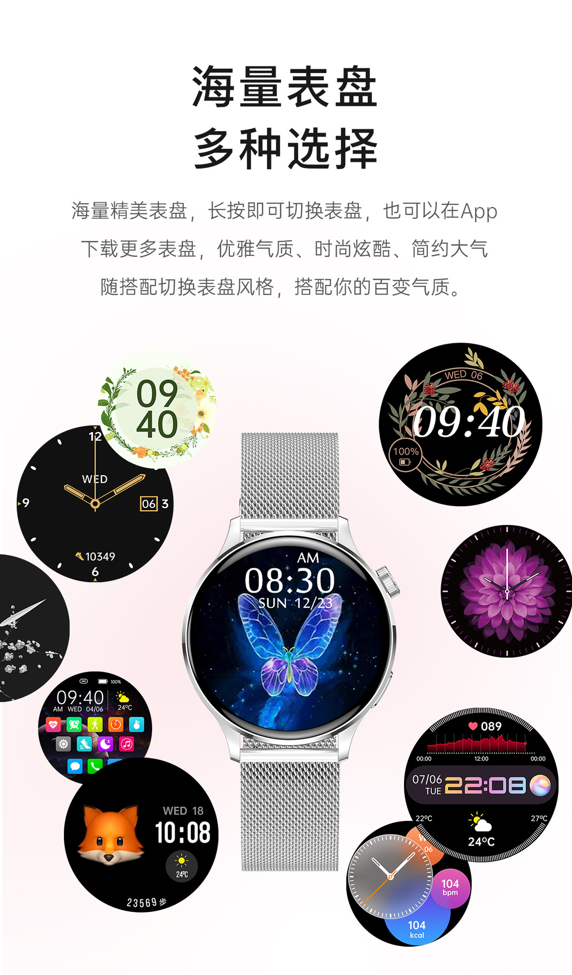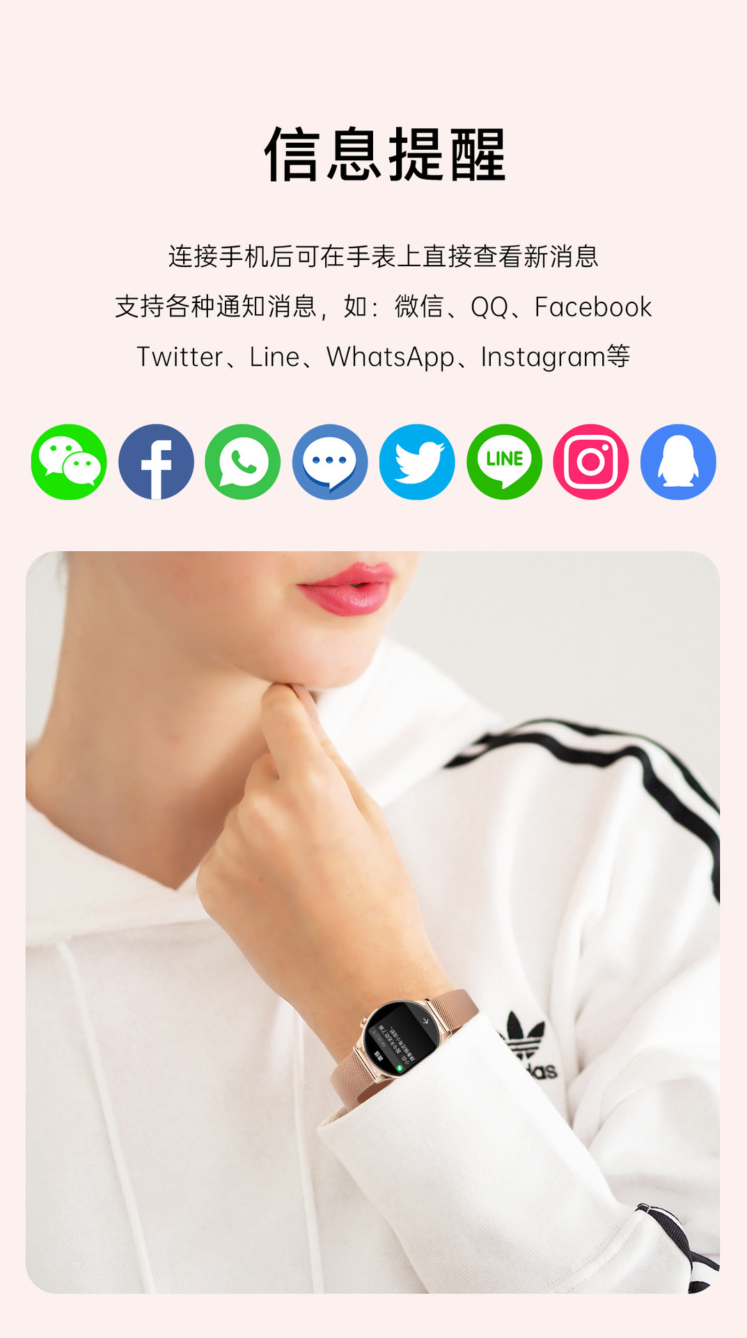 新款女性专用智能手表离线支付NFC语音助手锌合金机身运动检测
