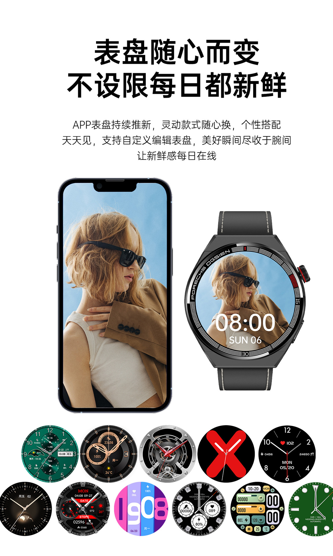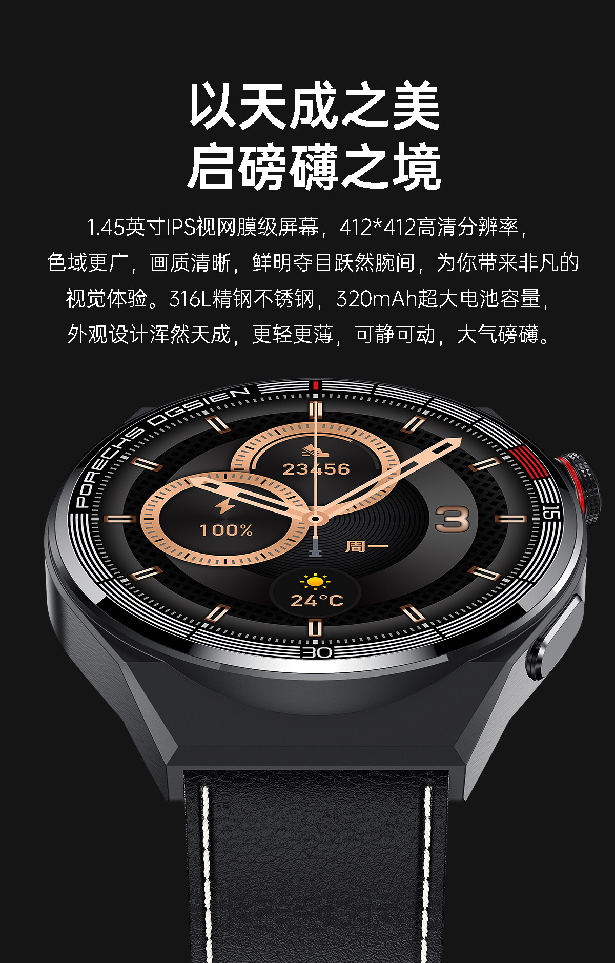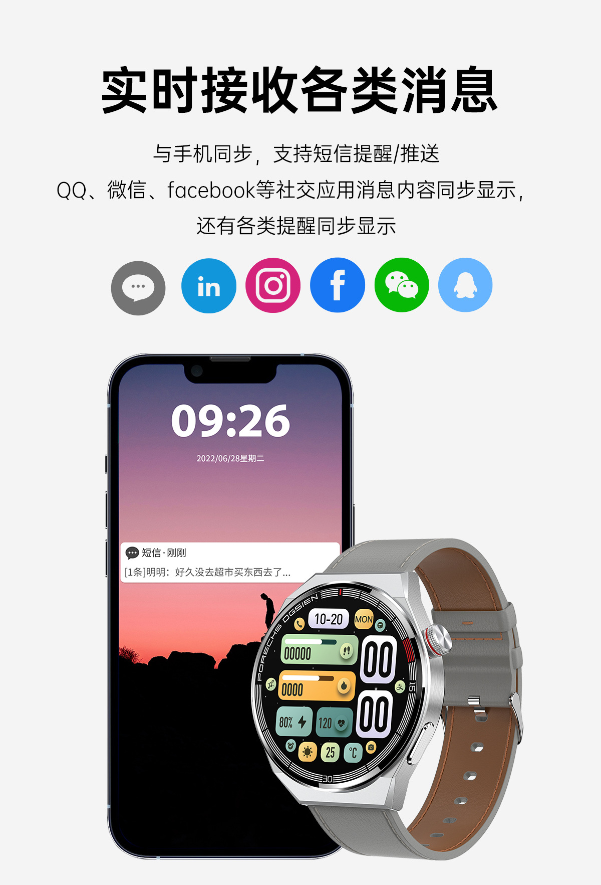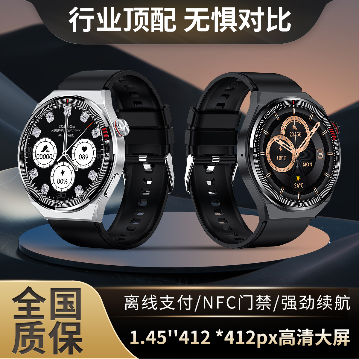 GT3pro新款1.45高分屏通话NFC离线支付运动健康检测无线充双表带