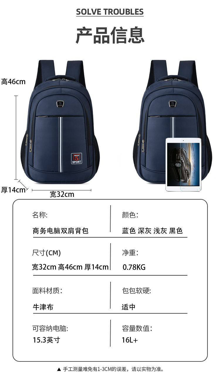 外贸新款双肩背包男休闲户外旅行包公司礼品可印logo电脑包