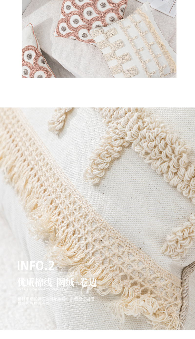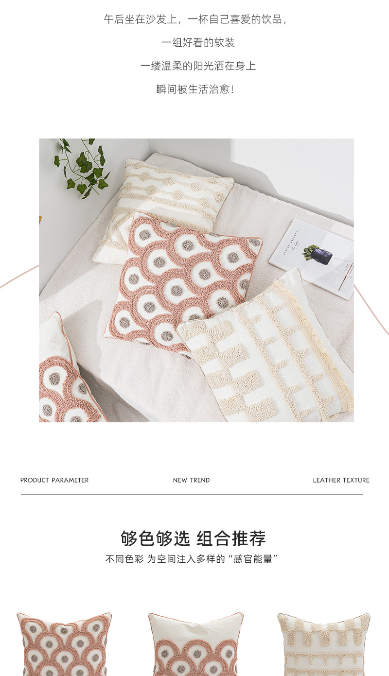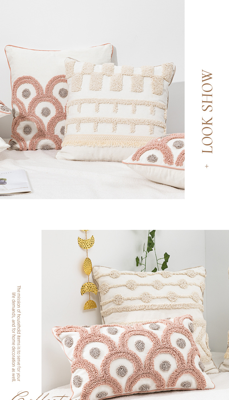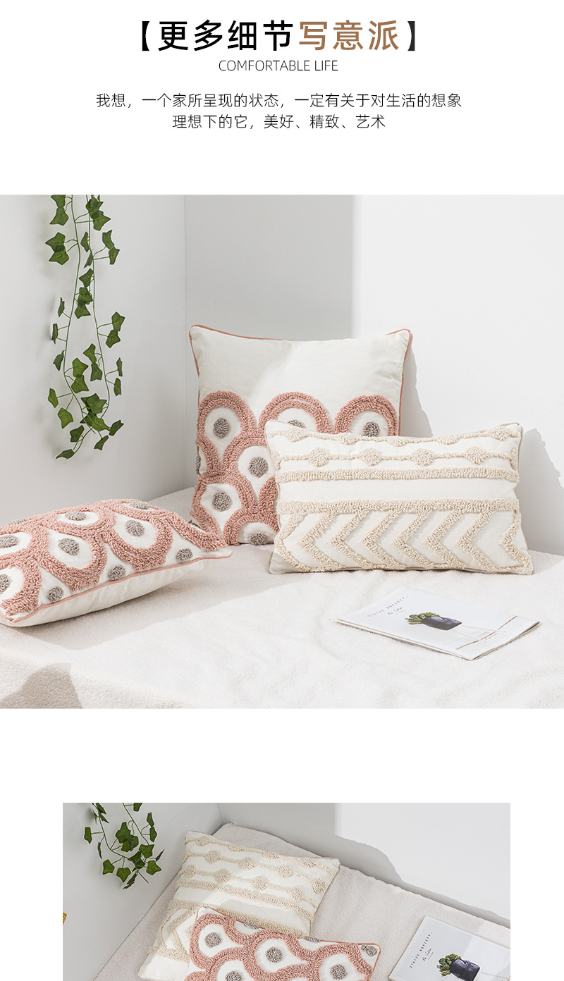 跨境热卖摩洛哥民族风圈绒刺绣靠垫抱枕套民宿样板间客厅沙发抱枕