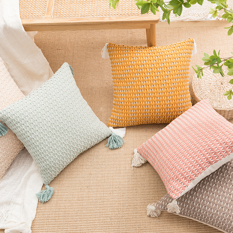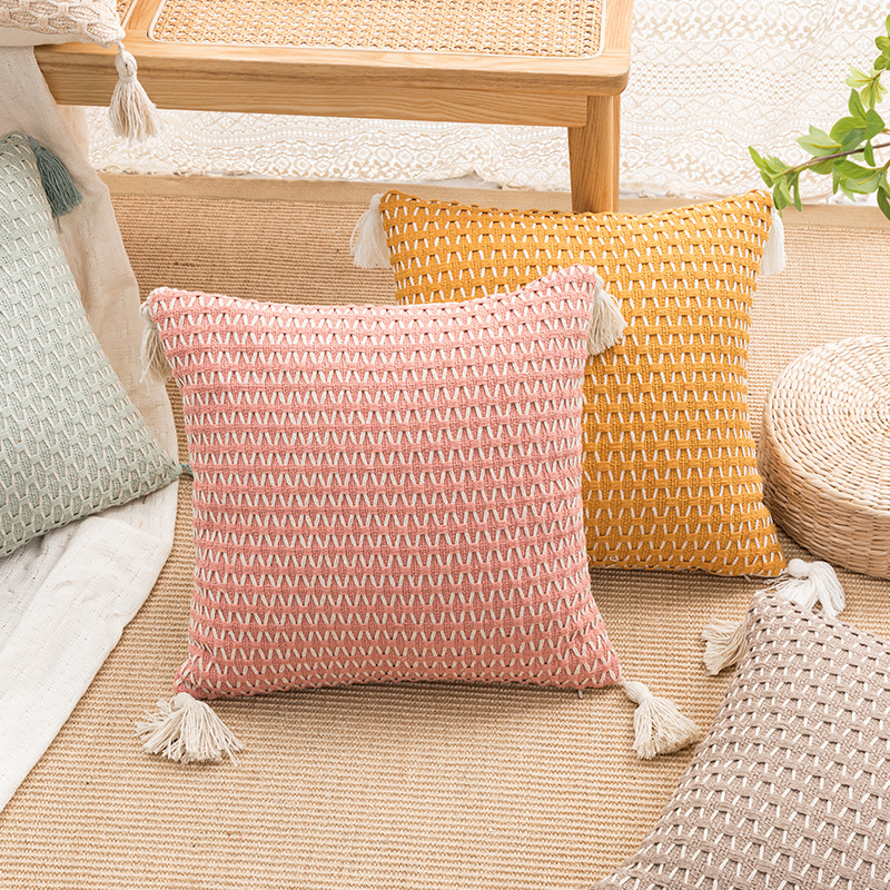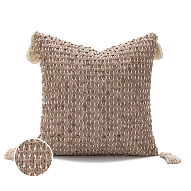 新品现代简约编织流苏抱枕套亚马逊跨境家用沙发靠垫套现货批发