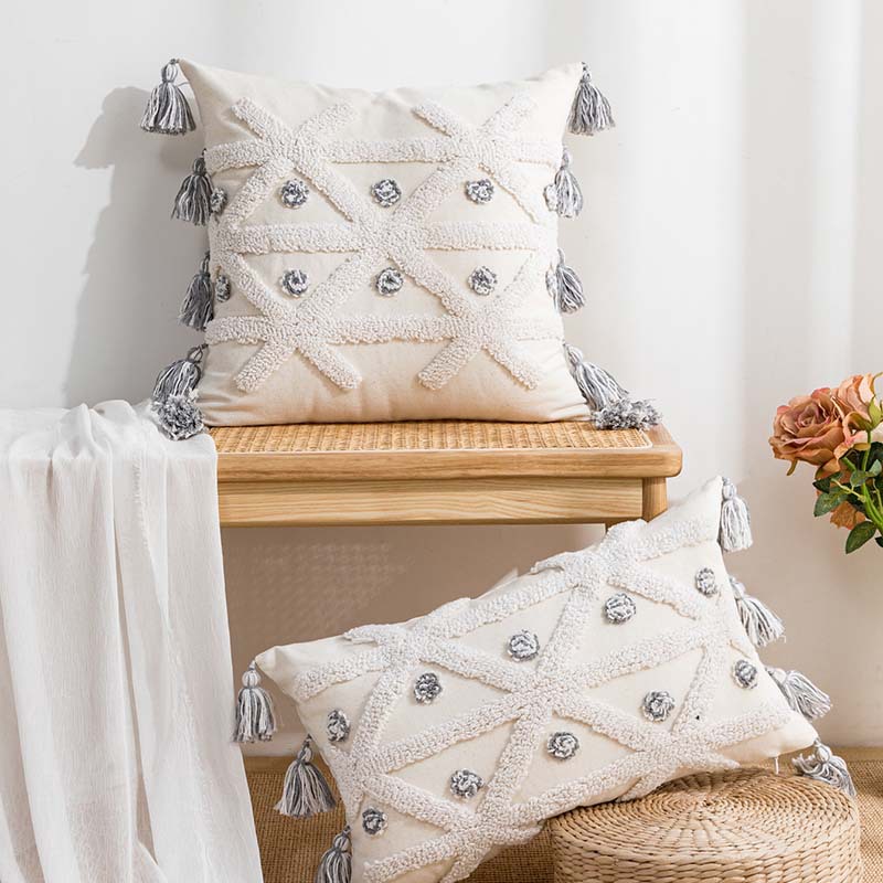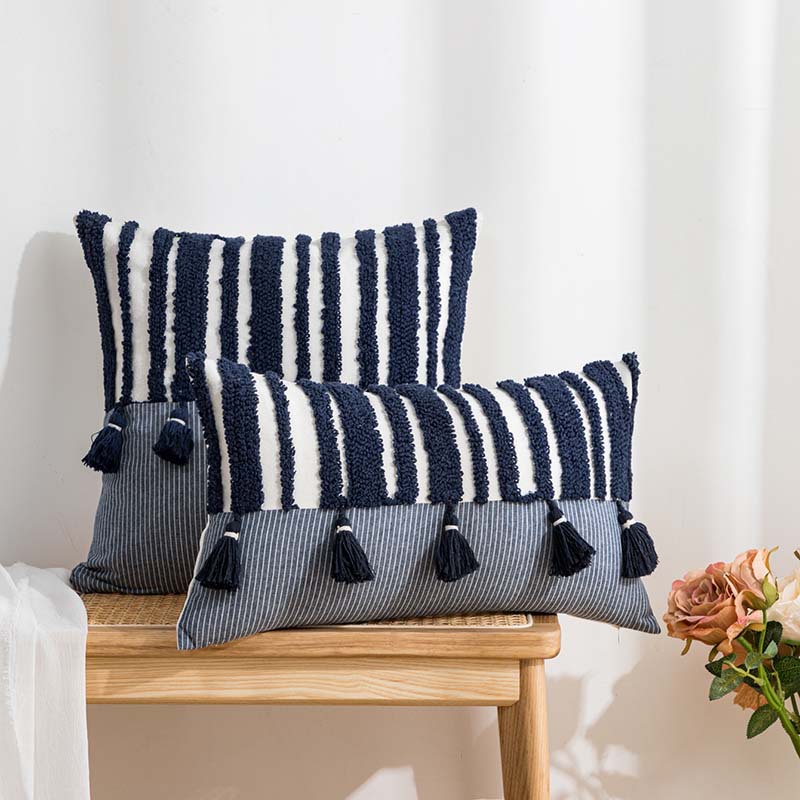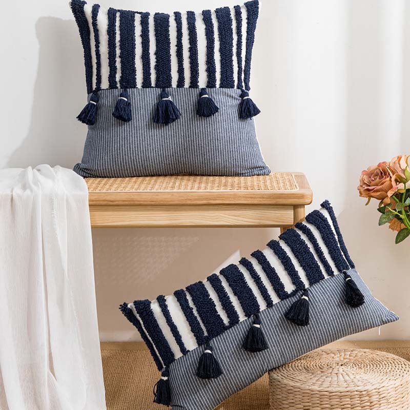 亚马逊跨境波西米亚流苏抱枕套全棉帆布拼接沙发靠枕腰枕套批发