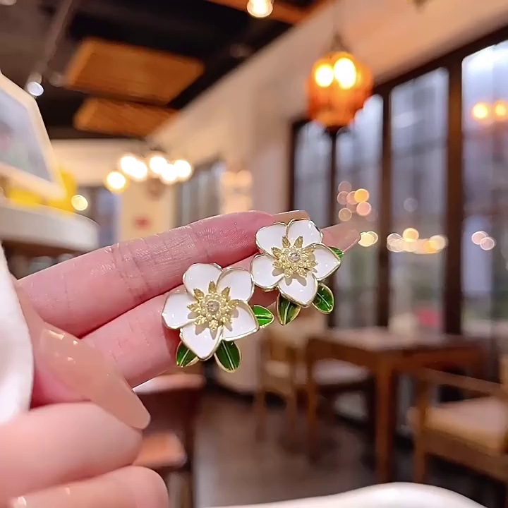 S925银针轻奢小众百搭气质蝴蝶结耳钉耳饰品小清新甜美花朵耳环女