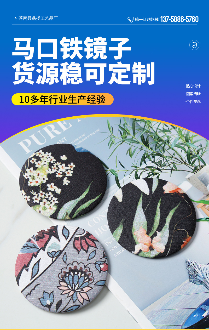 定 制马口铁镜子个性创意可手拿镜子圆形镜出方便携带马口铁镜子