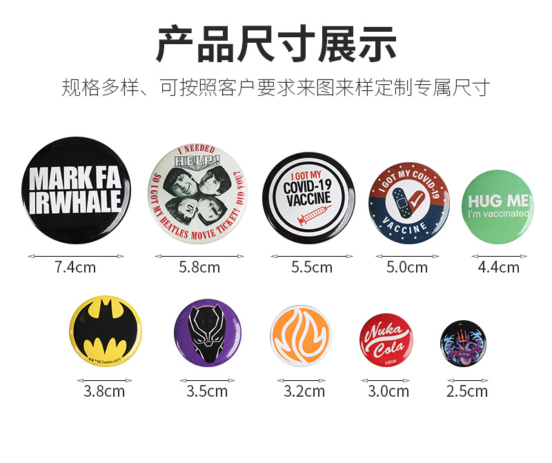 定 制创意圆形马口铁双闪徽章马口铁徽章圆形动漫可爱卡通别针