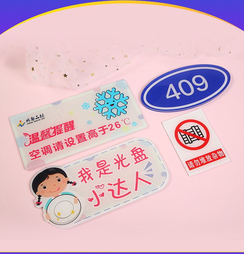 亚克力标贴亮面丝印薄膜面板 门牌温馨提示设备标牌UV打印logo