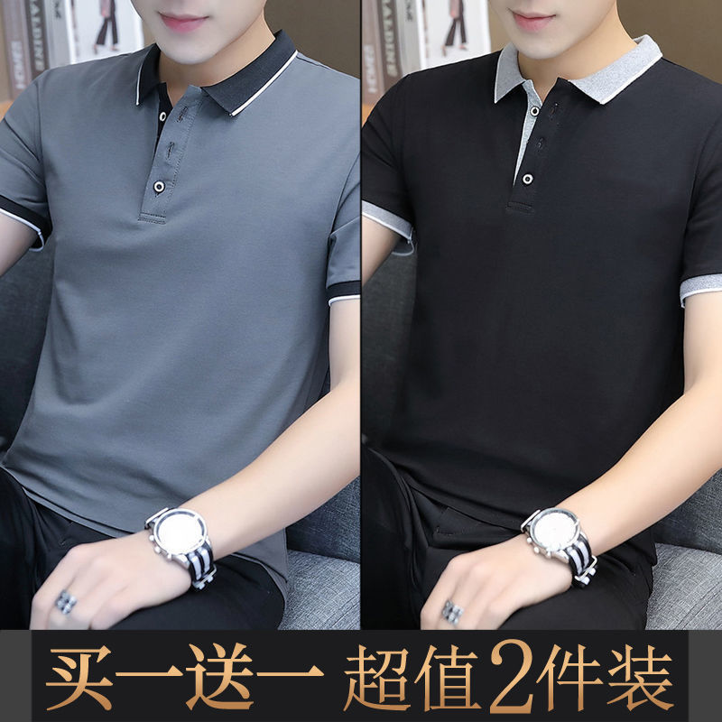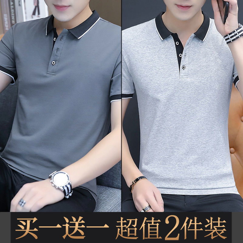 男士体恤2022新款潮流POLO衫冰丝短袖T恤衫翻领衫衣服男上衣跨境