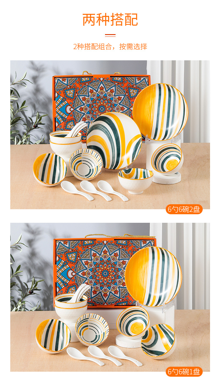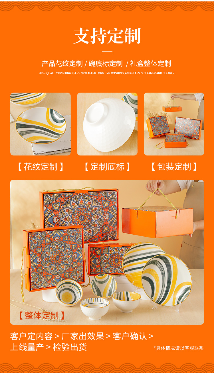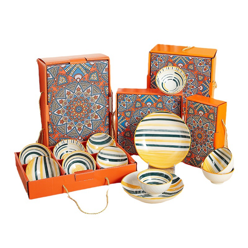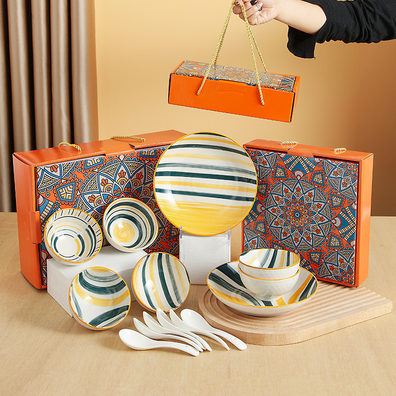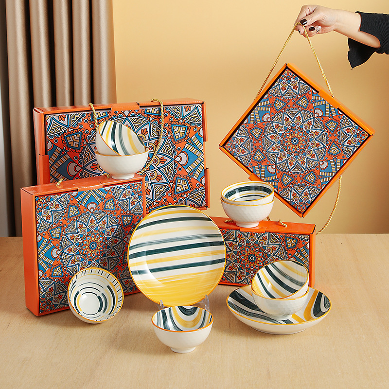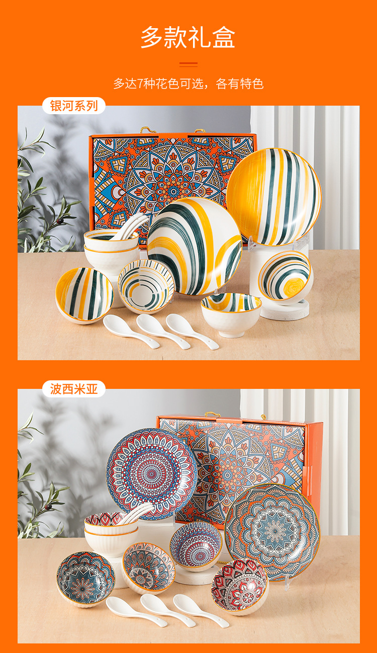 波西米亚风陶瓷餐具套装碗筷套装保险公司伴手礼开业礼品餐具