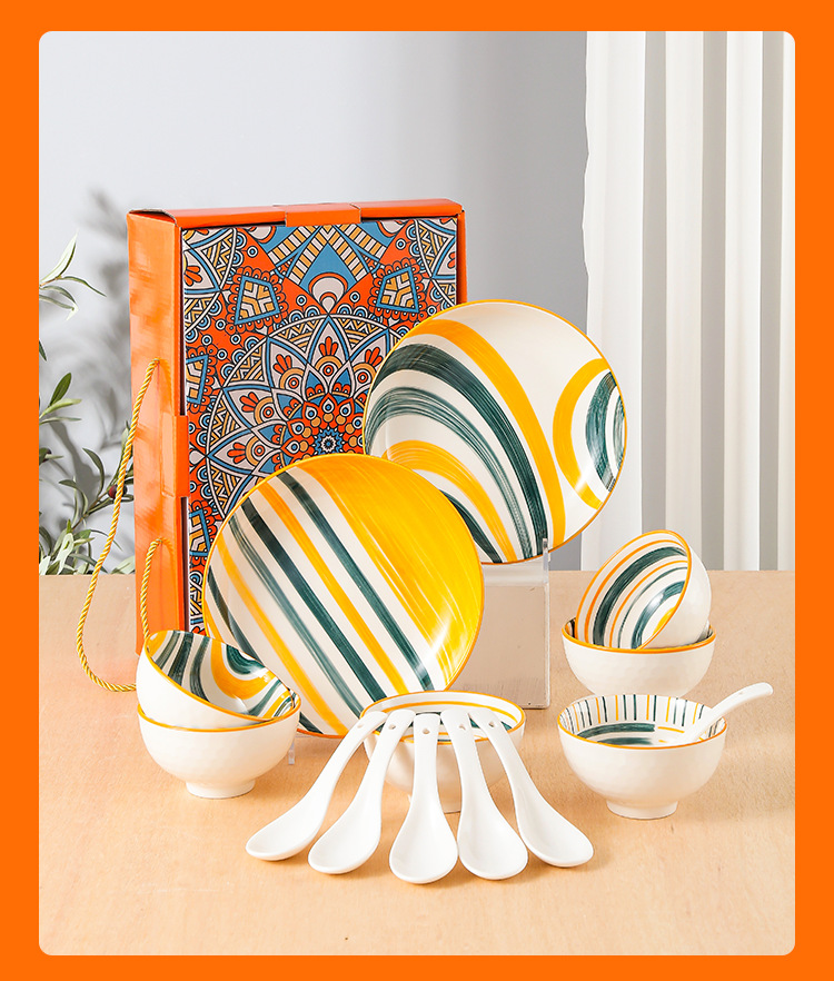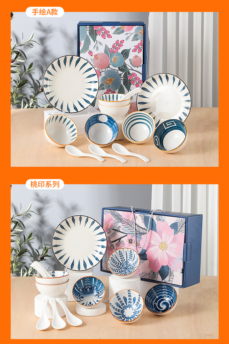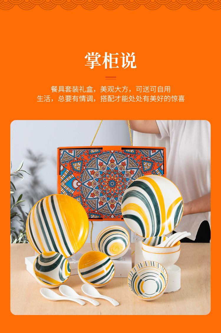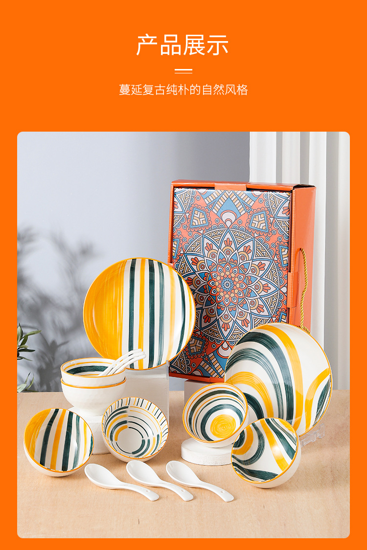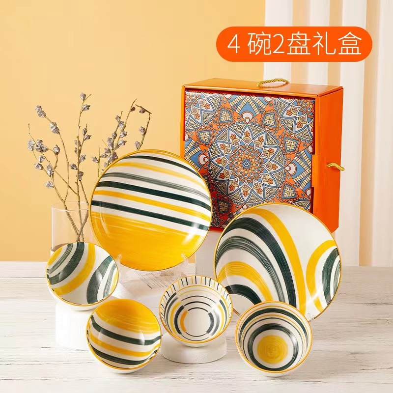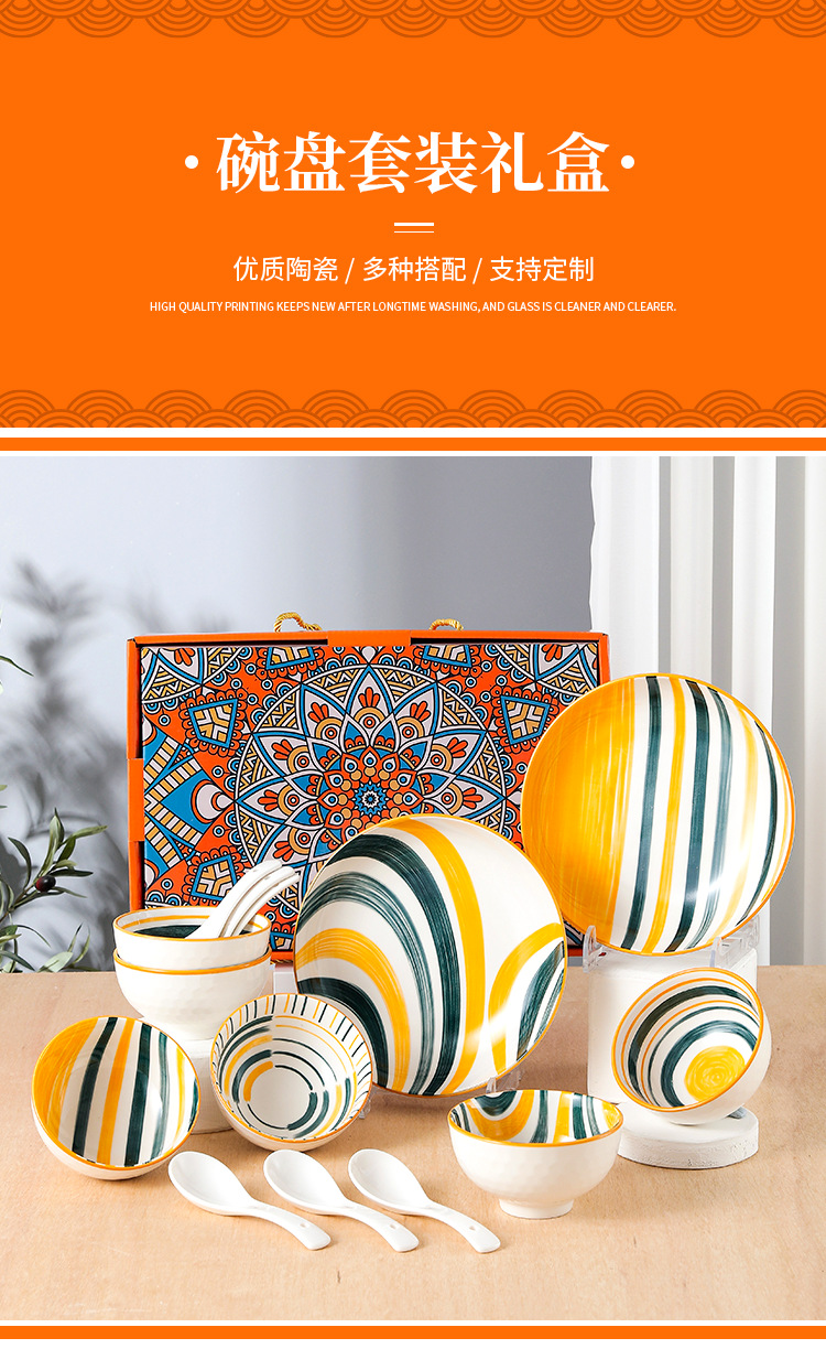 波西米亚风陶瓷餐具套装碗筷套装保险公司伴手礼开业礼品餐具