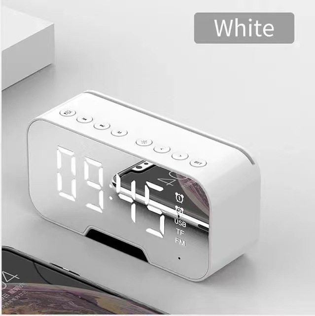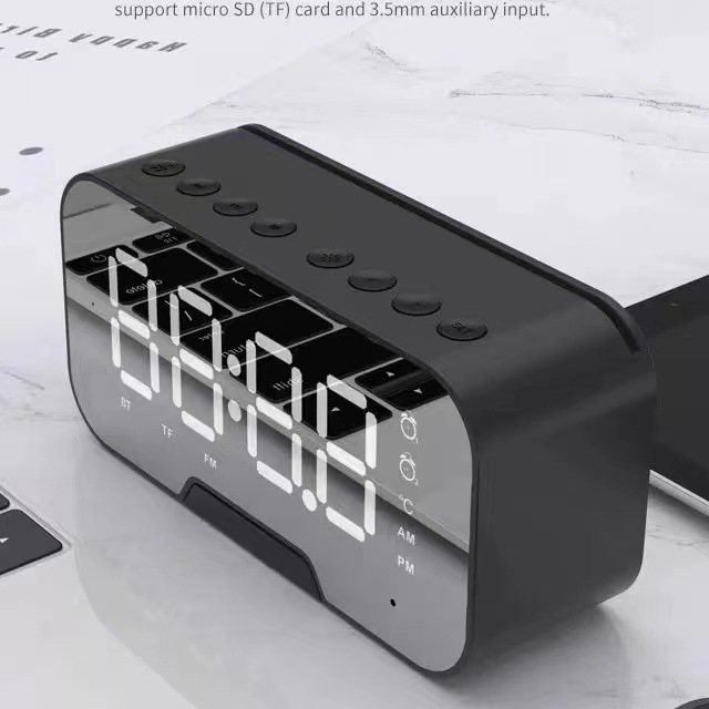 2022工厂直供闹钟蓝牙音箱收音机带手机支架插卡便携镜面小音响