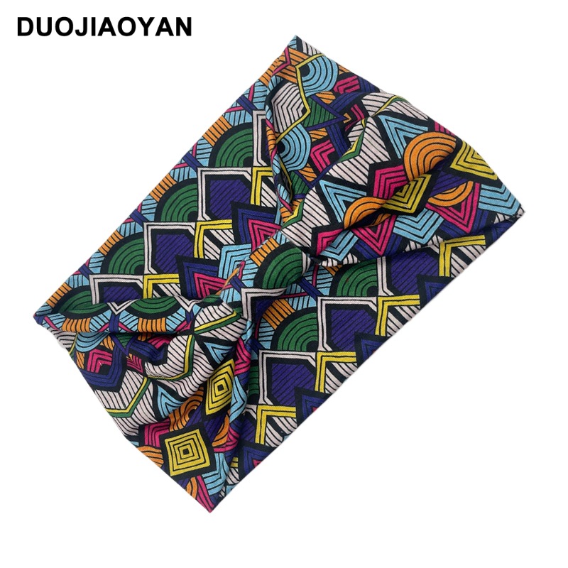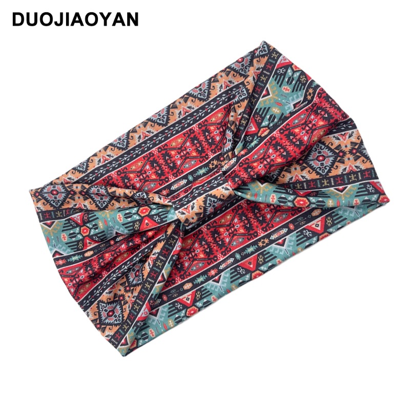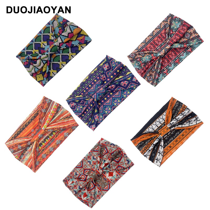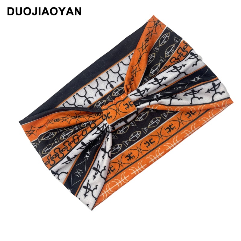 亚马逊新款非洲印花图案弹力宽边打结束发带运动瑜伽交叉发带批发