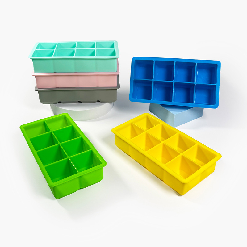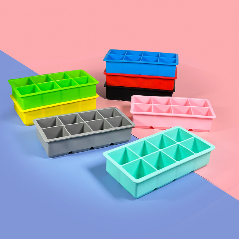 热卖食品级硅胶制冰盒 方形8格制冰模具 食品级厨房大号硅胶冰格