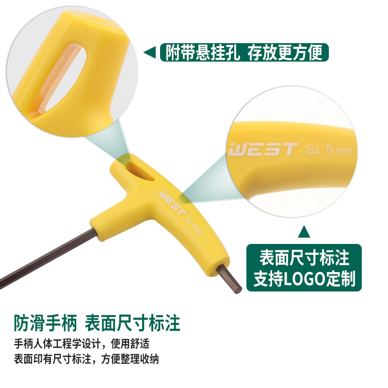 west牌S2合金钢T型内六角扳手握把L型双头加长六棱拐杖扳手六角匙