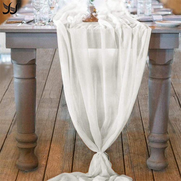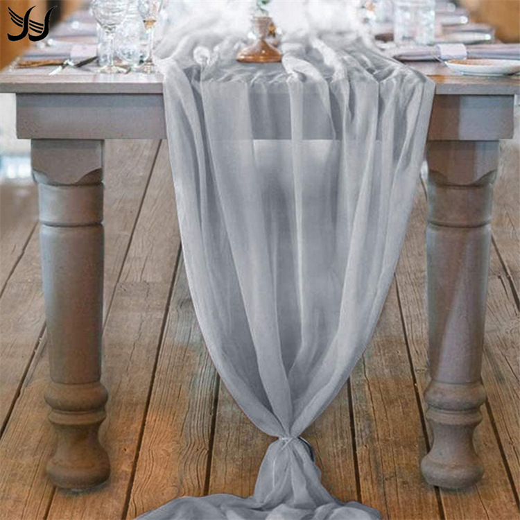 亚马逊新款雪纺纱乔其纱桌旗 欧式美式酒店装饰风格桌旗 婚庆装饰