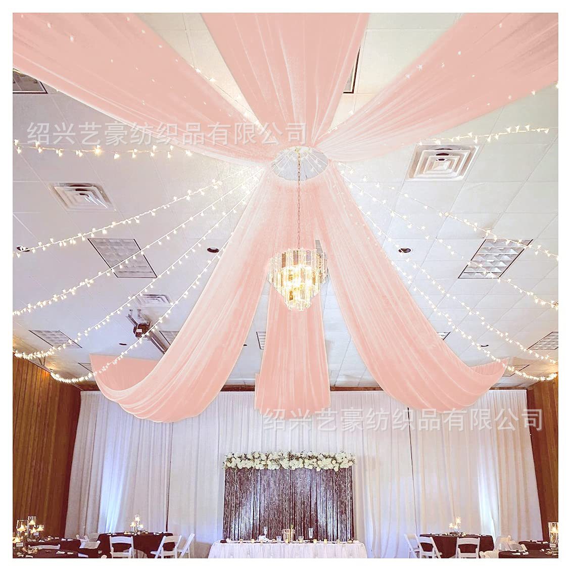 吊顶装饰布景 欧式婚庆装饰雪纺帷幔窗帘可穿杆窗帘