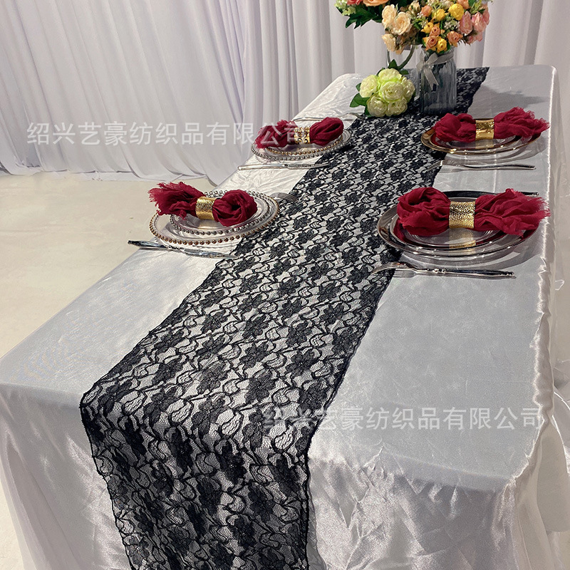 厂家直销法式浪漫白色黑色花边蕾丝桌旗婚礼装饰一件代发