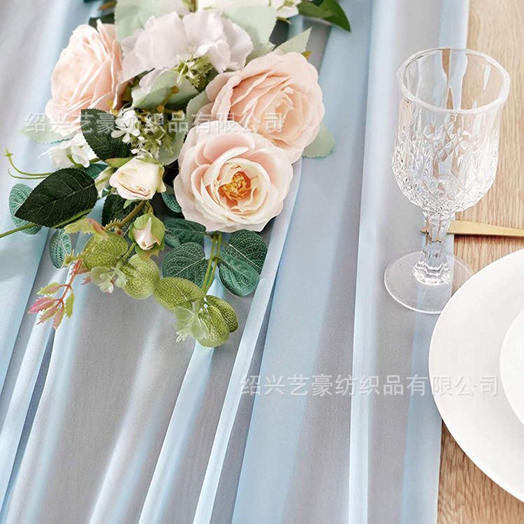 厂家现货供应跨境热销桌旗宴会婚礼装饰桌旗雪纺纱桌旗