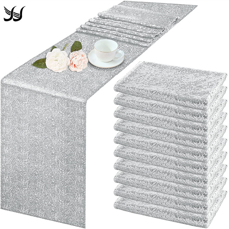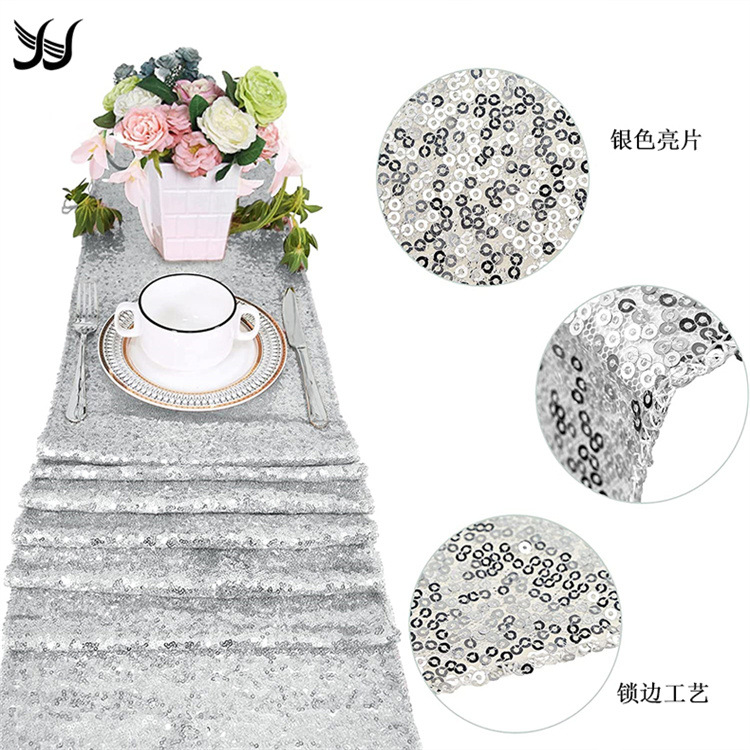 亚马逊加密满版亮片桌旗单层闪光婚礼宴会桌垫派对装饰