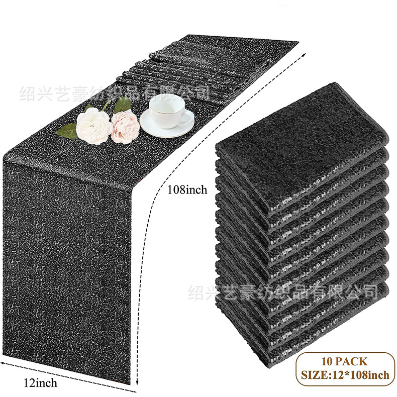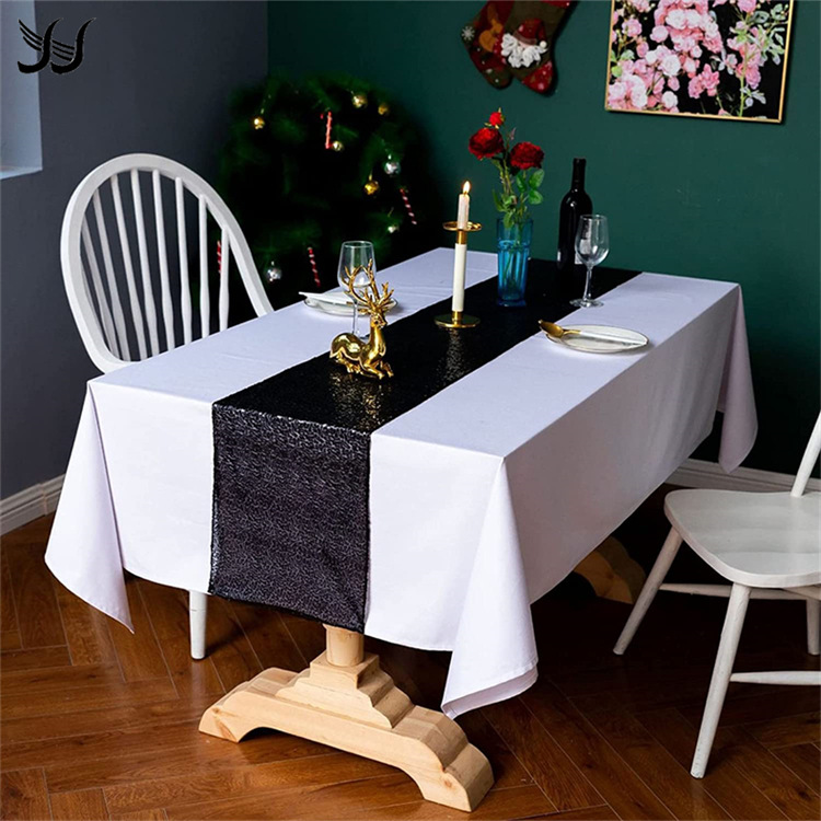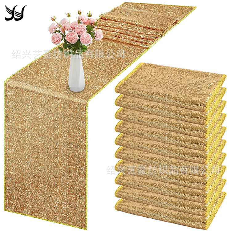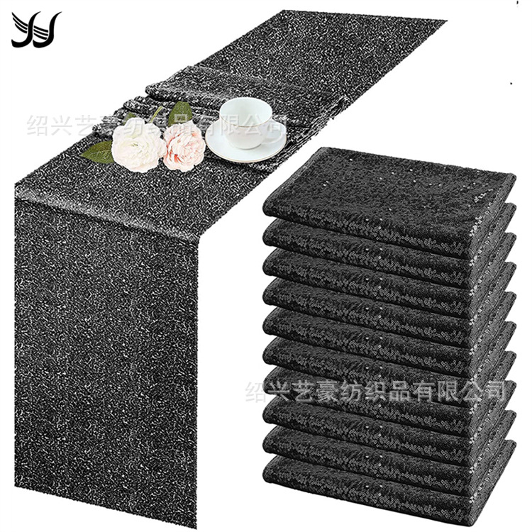 批发酒店婚庆桌布装饰ins涤纶方形纯色闪光珠片满版绣花亮片桌旗