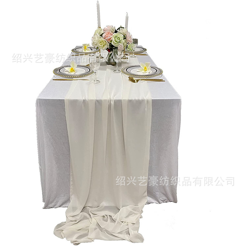 现货美式欧式婚庆酒店宴会装饰柔软轻薄雪纺桌旗