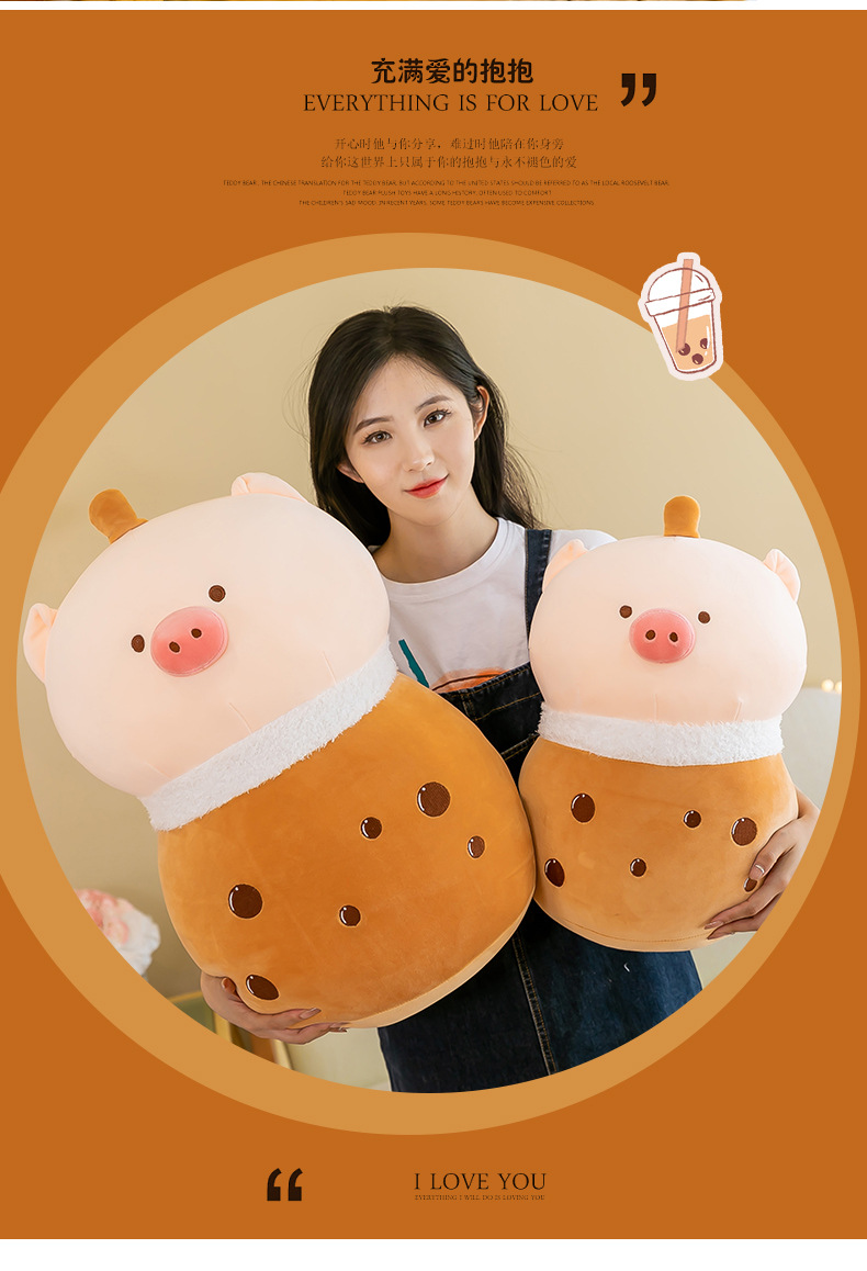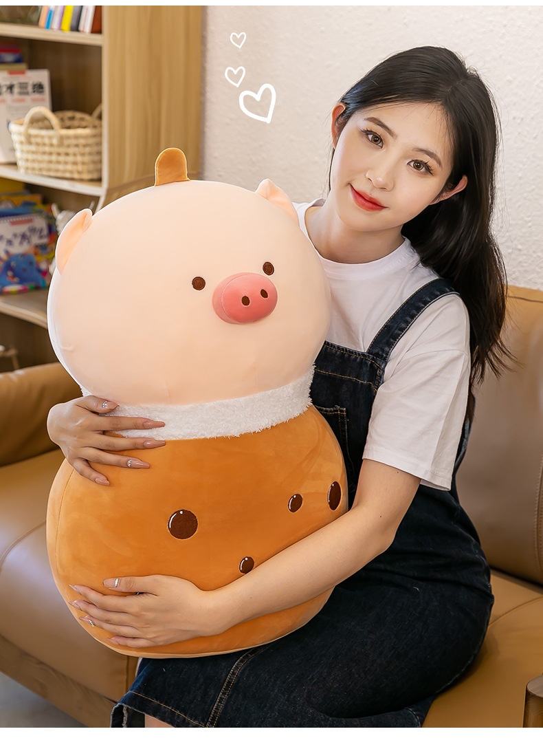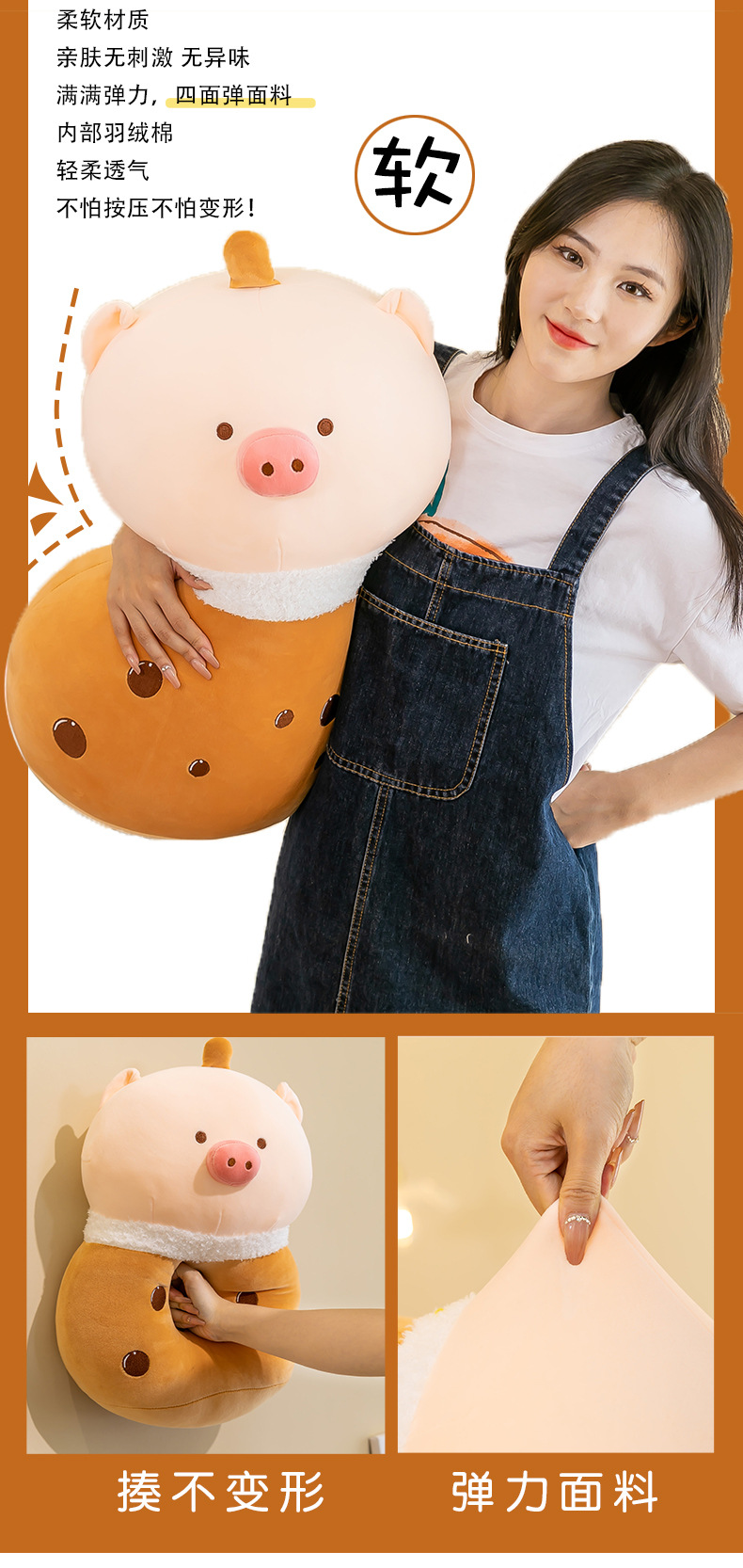 2023夏季新款毛绒玩具珍猪奶茶公仔四面弹面料大号黄色抱枕节日礼