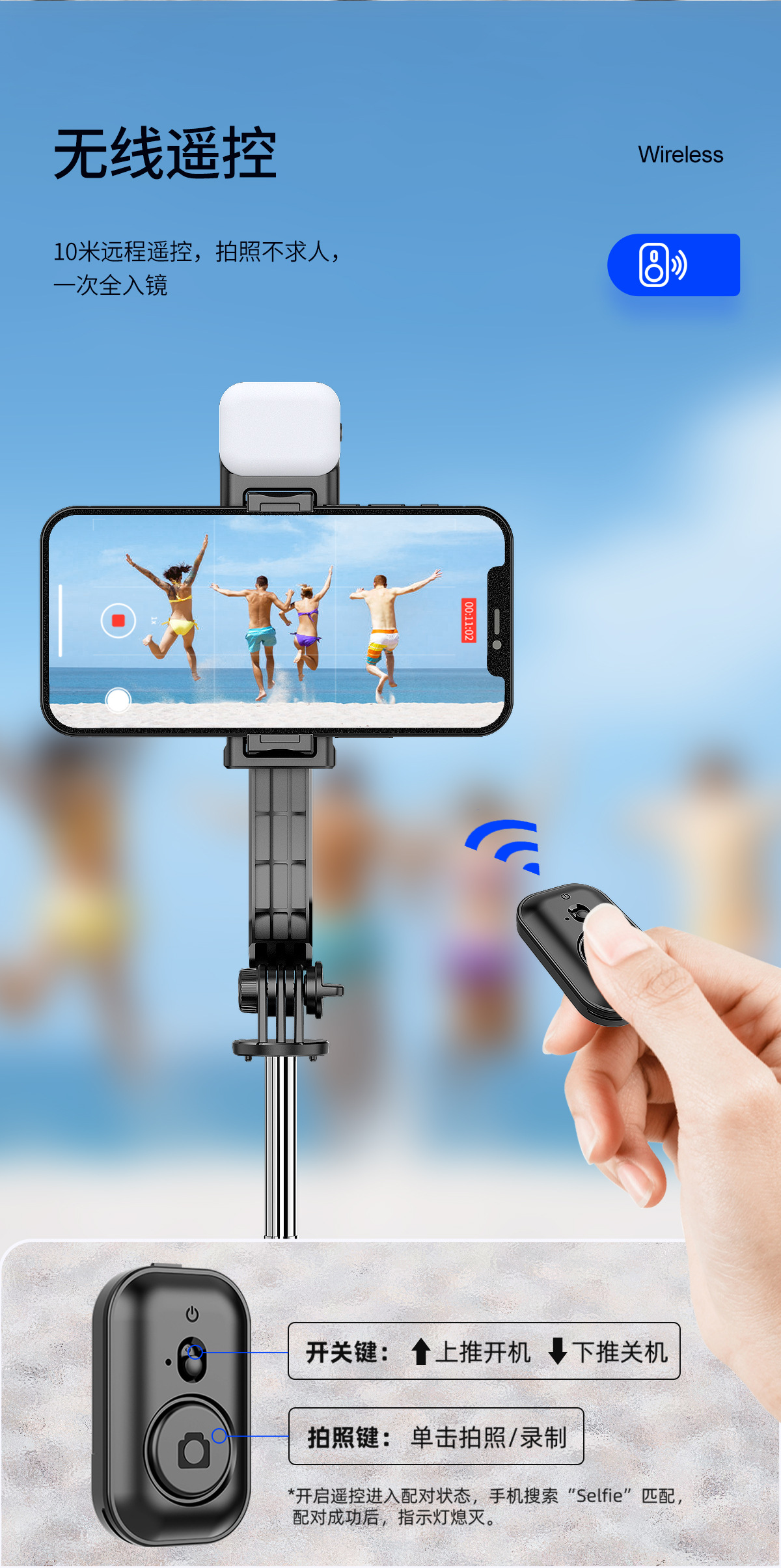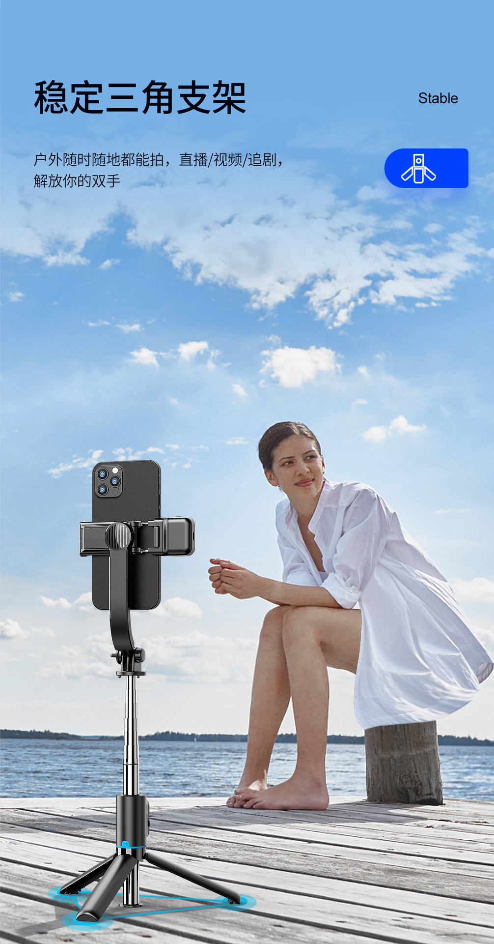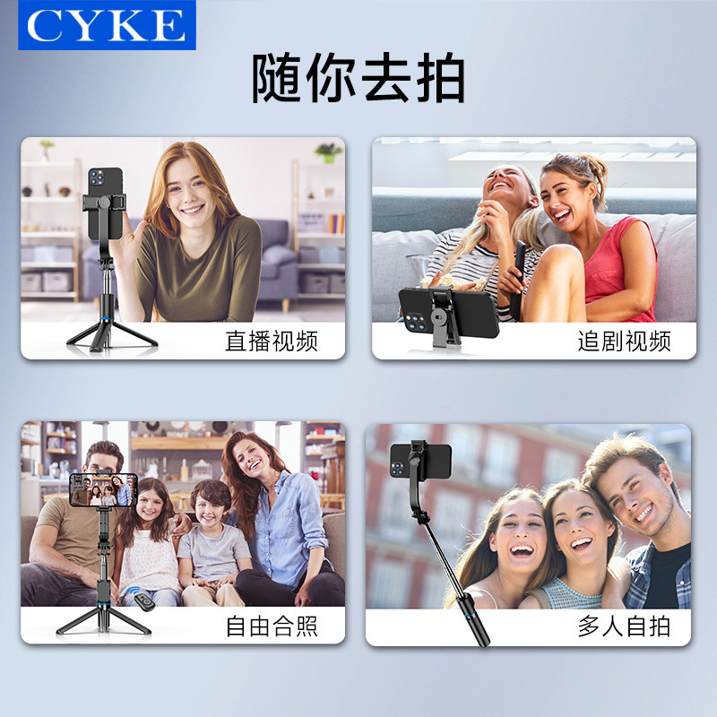 CYKE 新款C01自拍杆批发三脚架一体式桌面直播手机支架可拆卸夹头