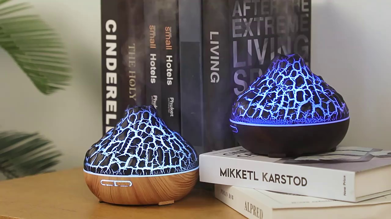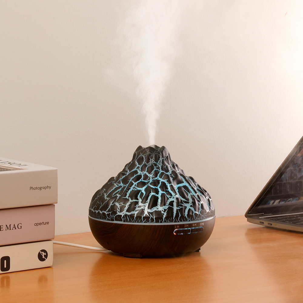 跨境新款火山香薰机桌面木纹香薰机家用加湿器迷你氛围夜灯批发