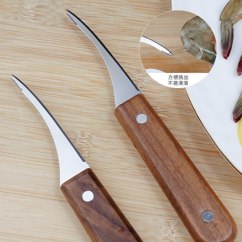 不锈钢虾刀 剥虾刀 橡木虾线刀 厨用开虾背器 鱼肚清理虾肠刀