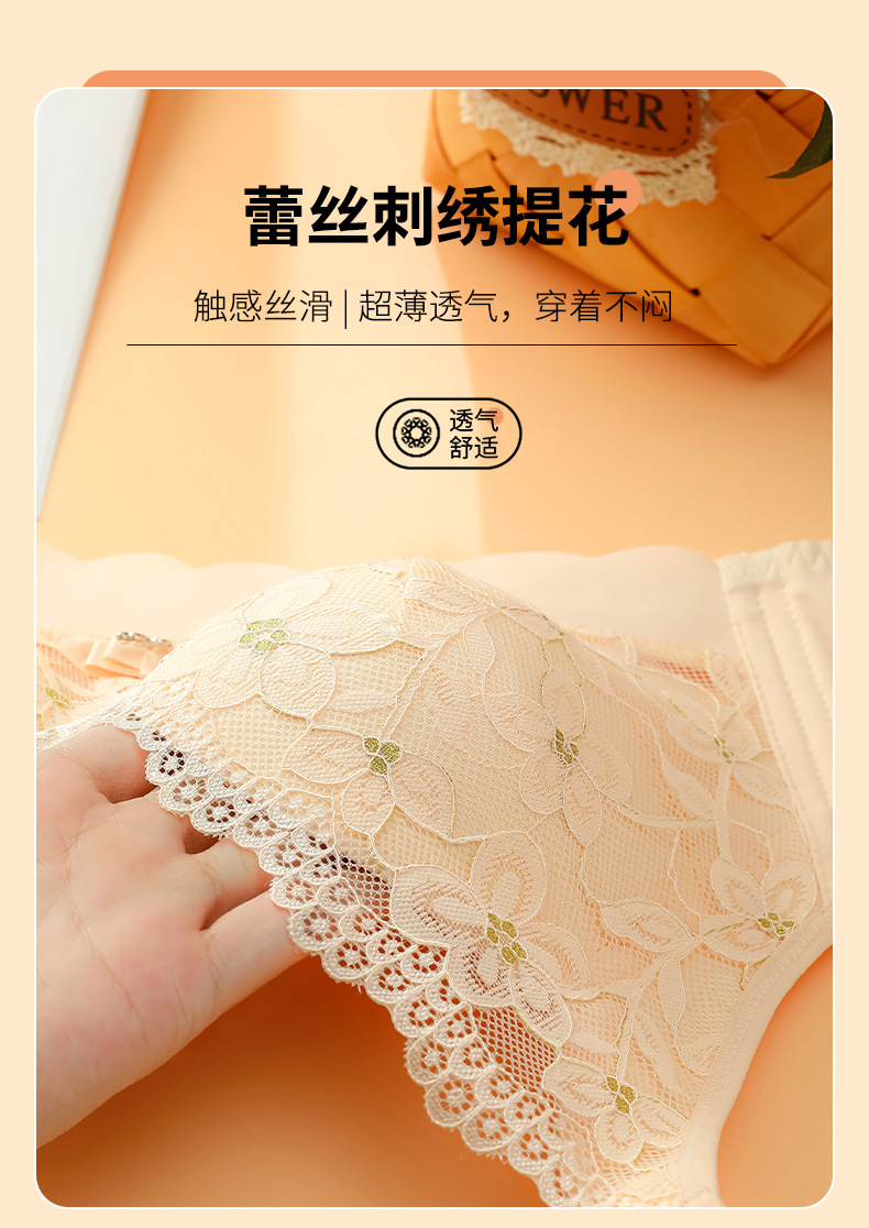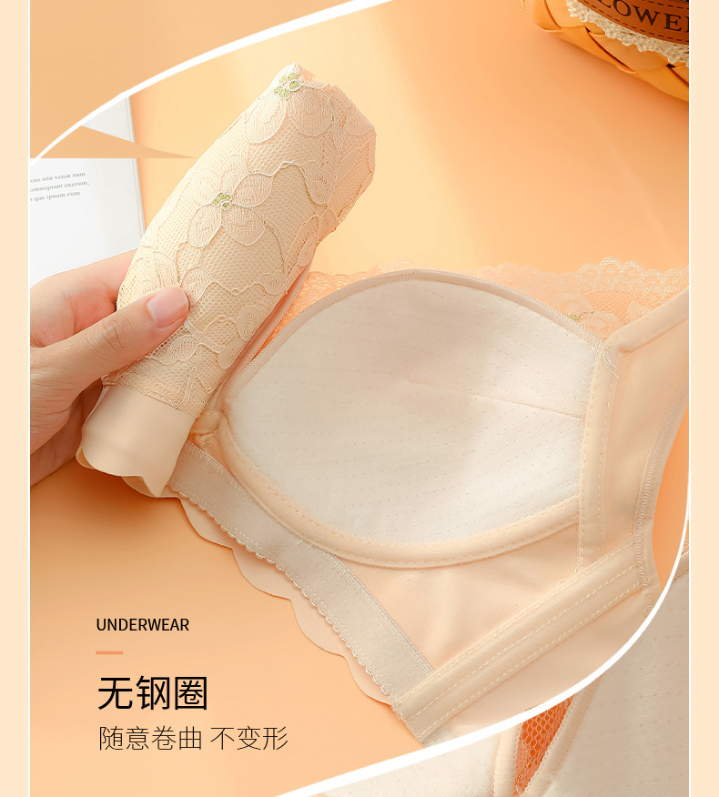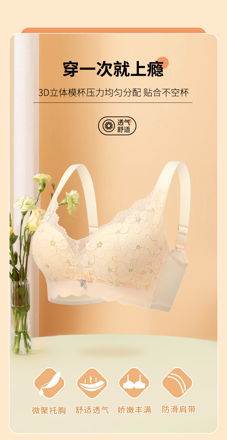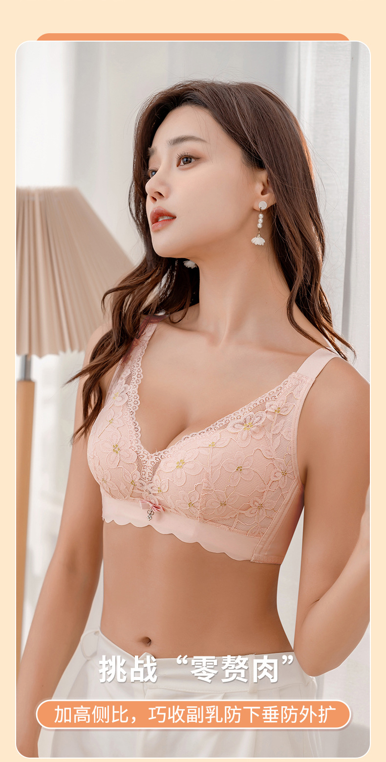 刺绣蕾丝透气薄杯内衣无钢圈聚拢收副乳防外扩防下垂无痕美背胸罩