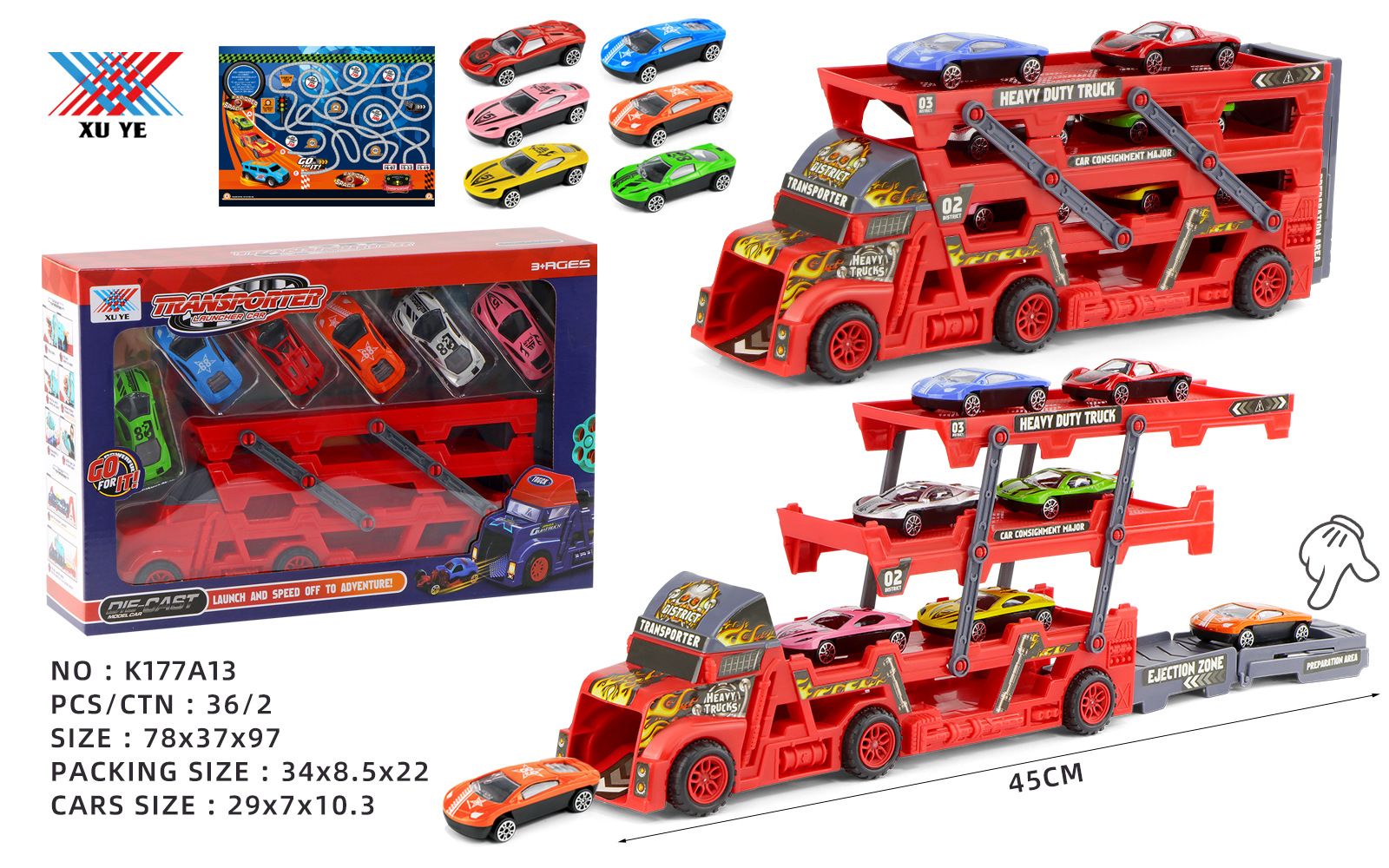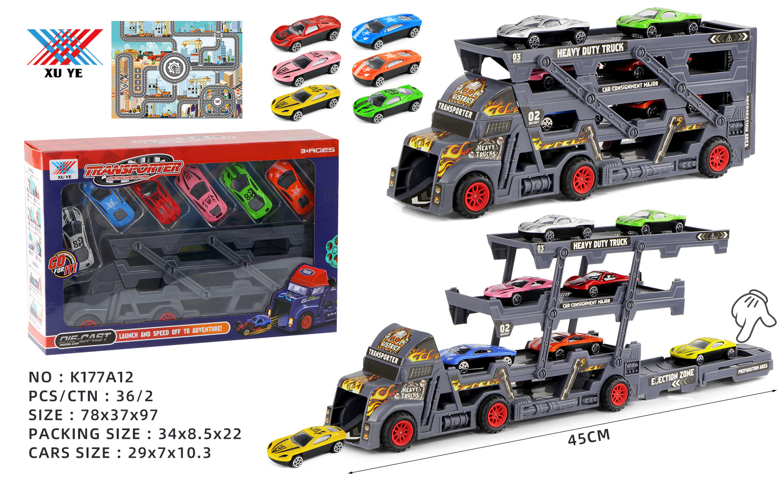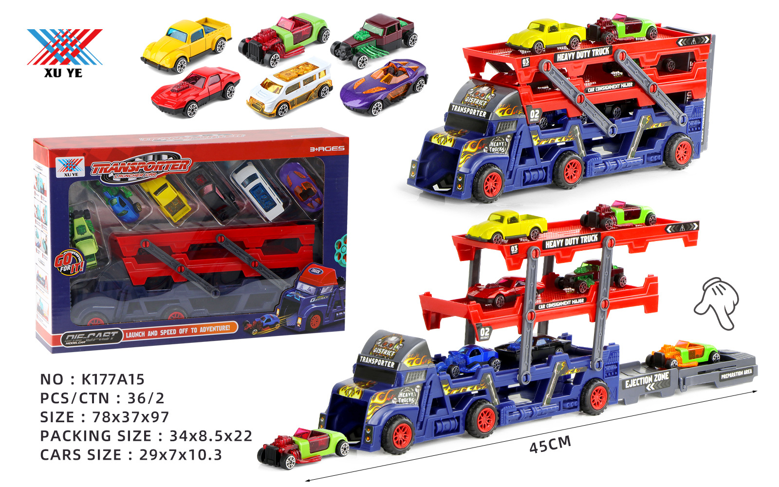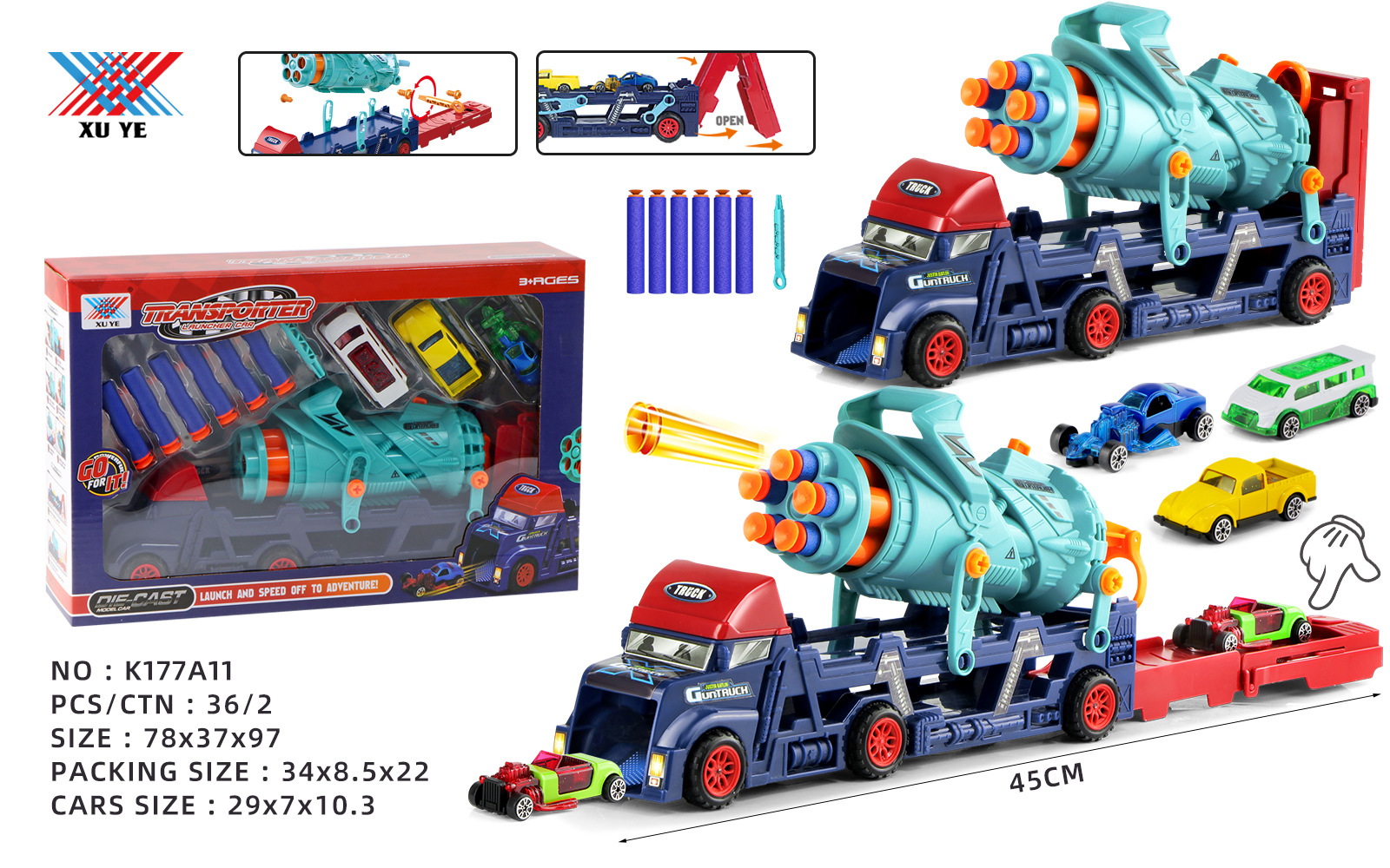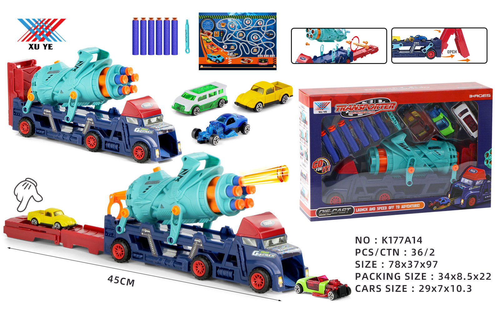 DIY2合1运输车伸展弹软弹发射配合金玩具车大卡车收纳运输车儿童