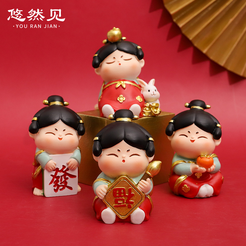 中式创意小礼物古风女生家居桌面车载蛋糕装饰品树脂汽车国