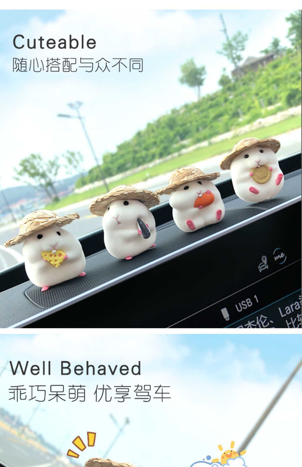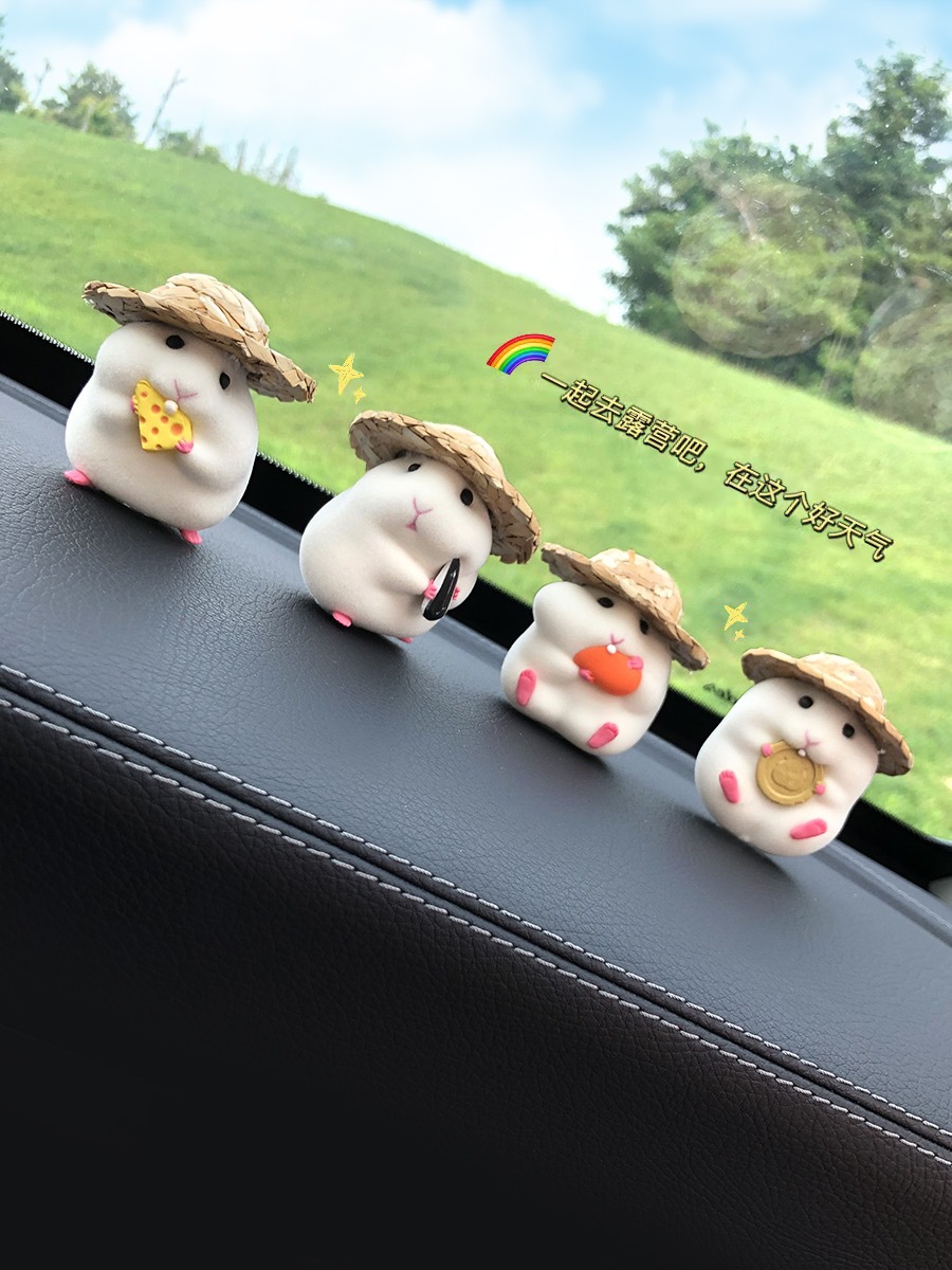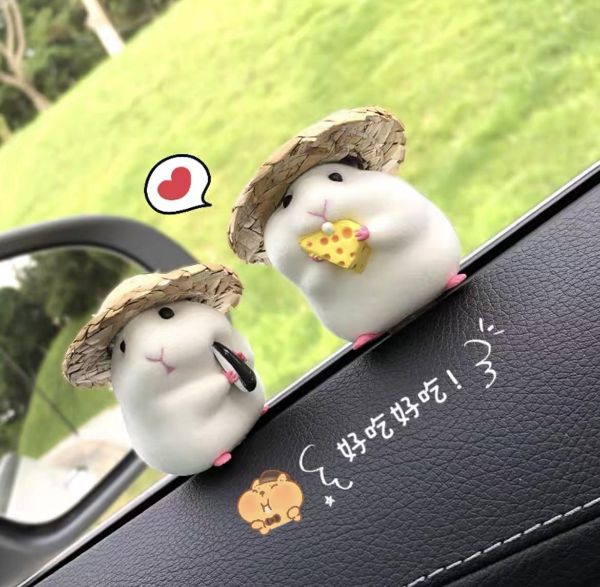 吃货仓鼠汽车摆件窗边车内饰品可爱老鼠公仔车载中控台车装饰用品