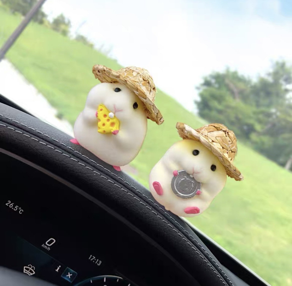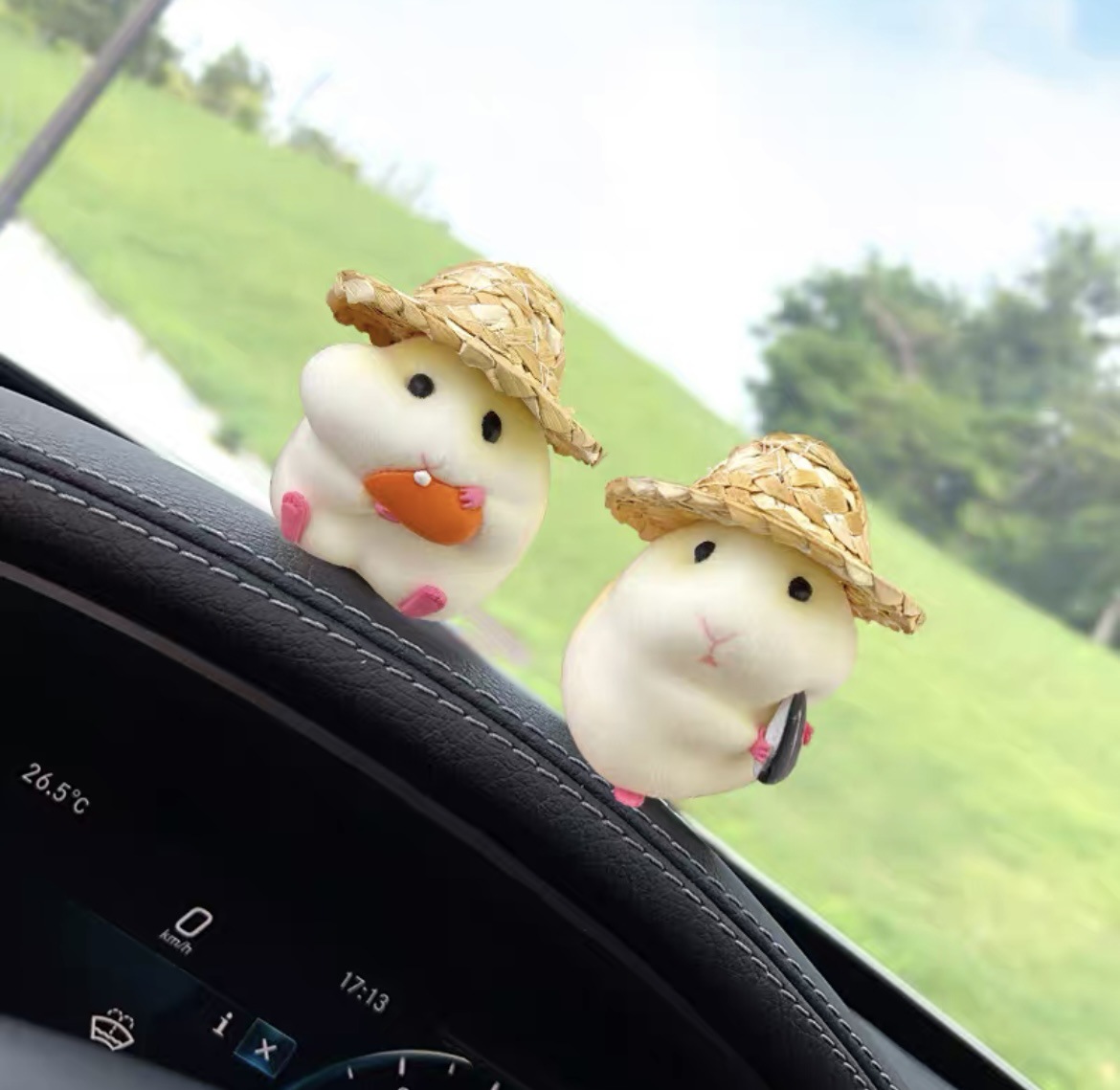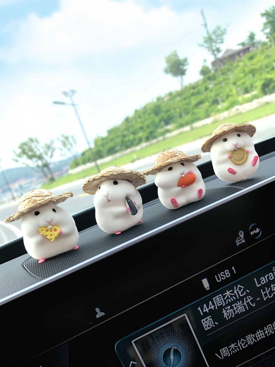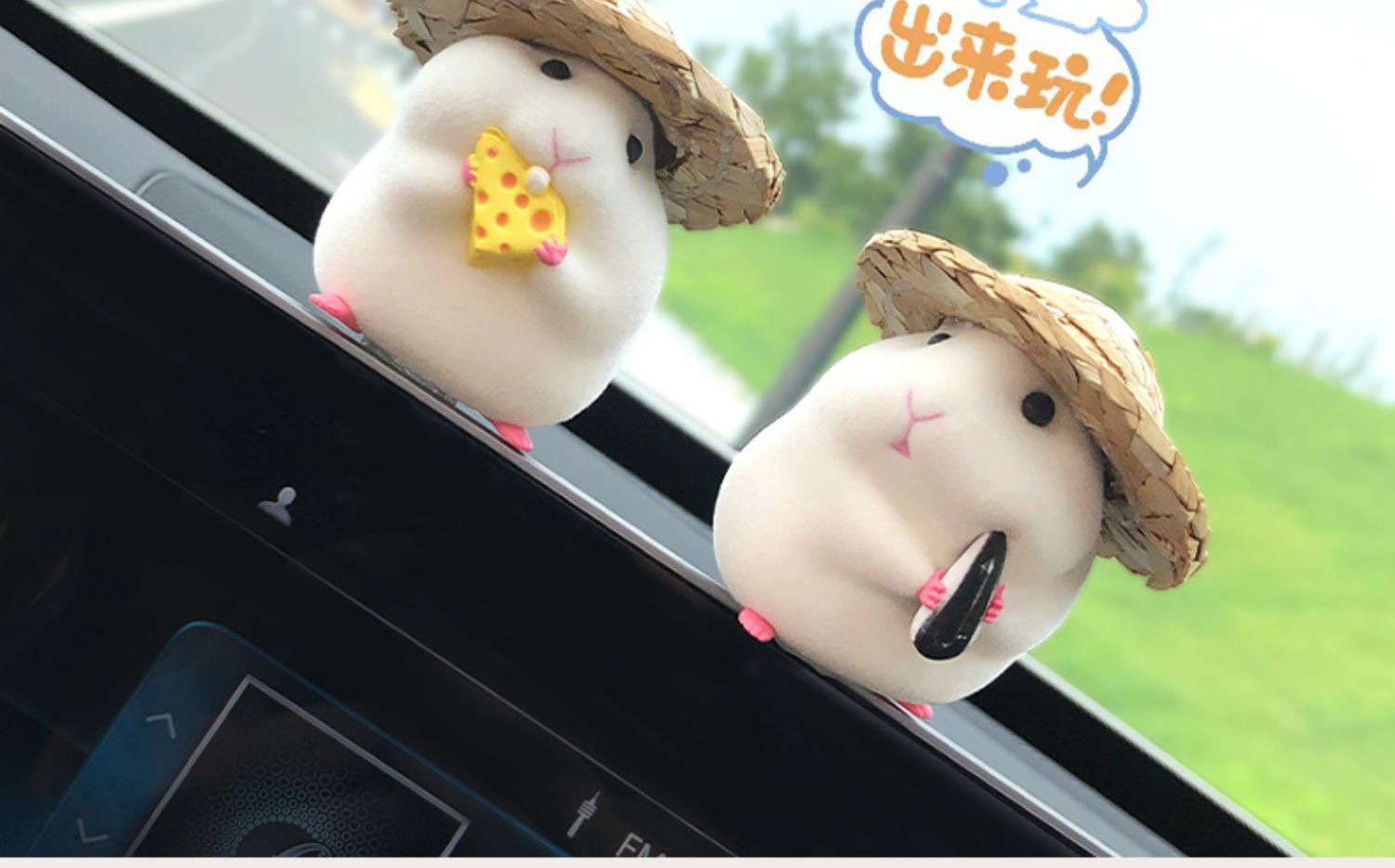 吃货仓鼠汽车摆件窗边车内饰品可爱老鼠公仔车载中控台车装饰用品