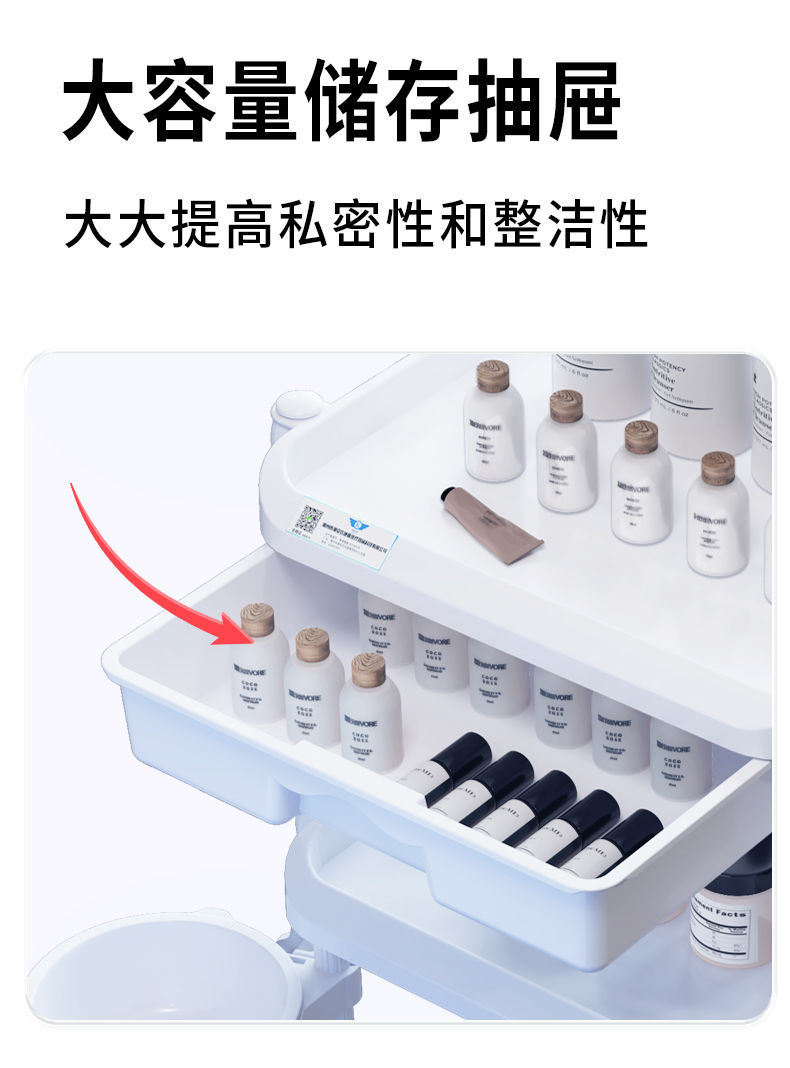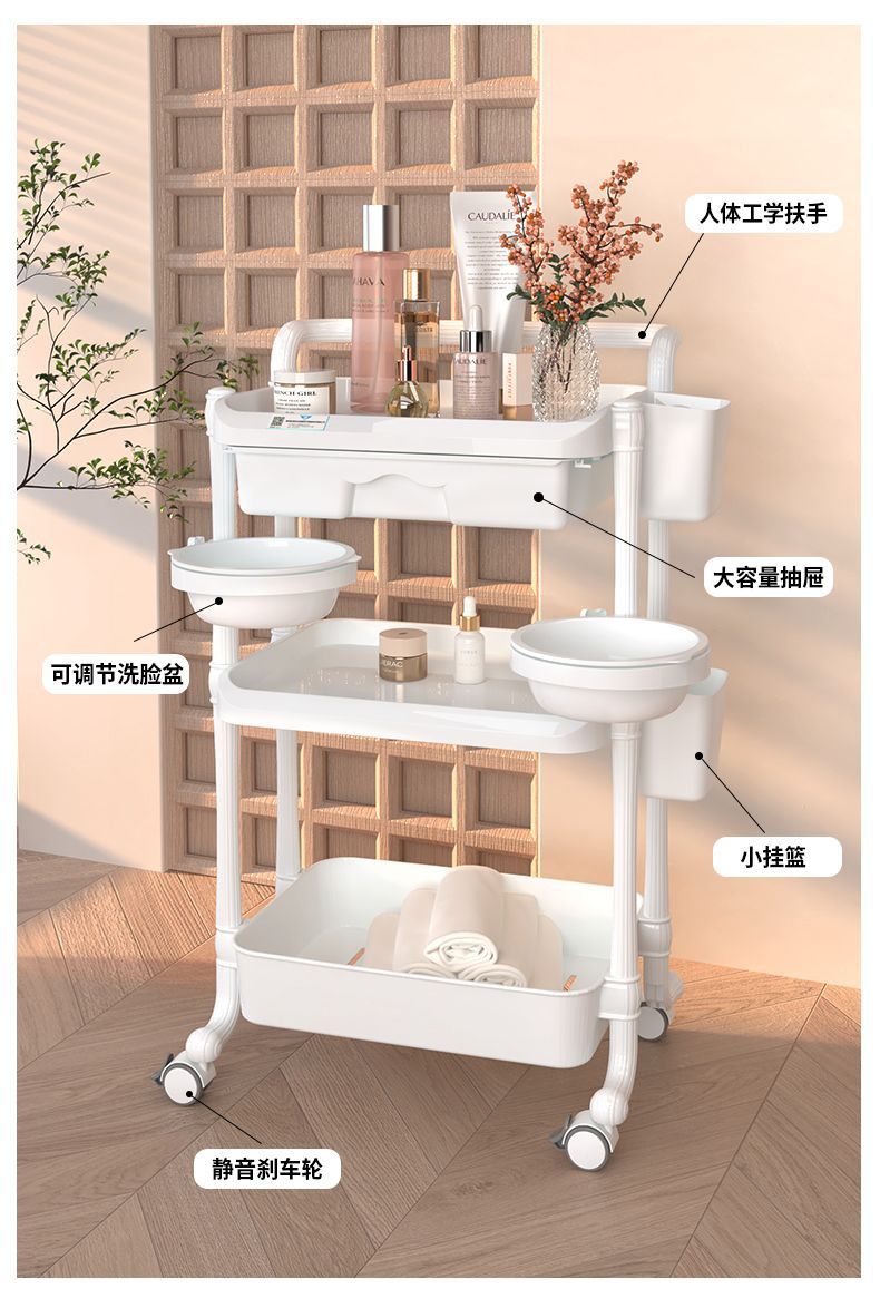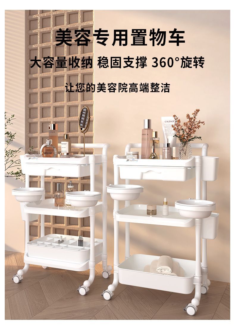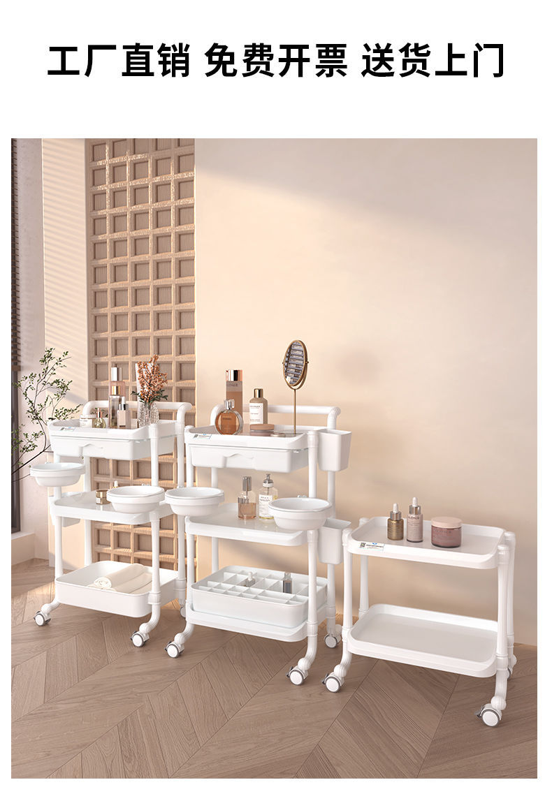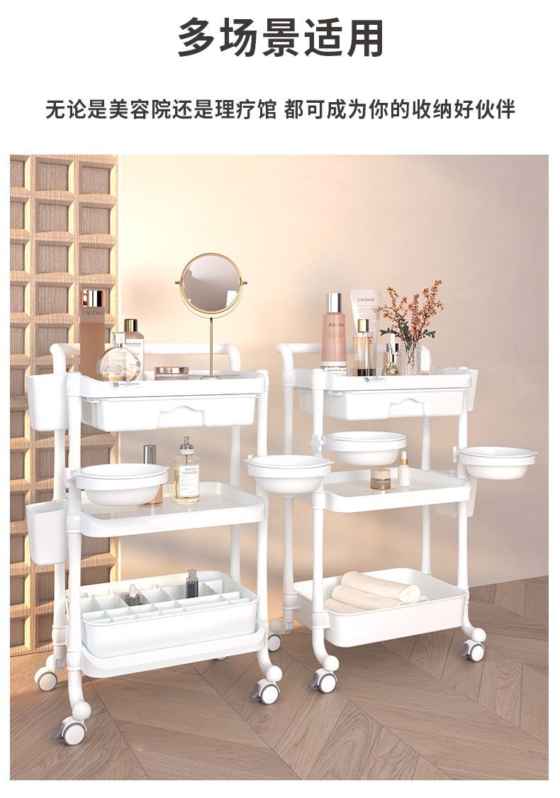 美容美发美甲小推车置物架可移动三层带抽屉美容院仪器工具车