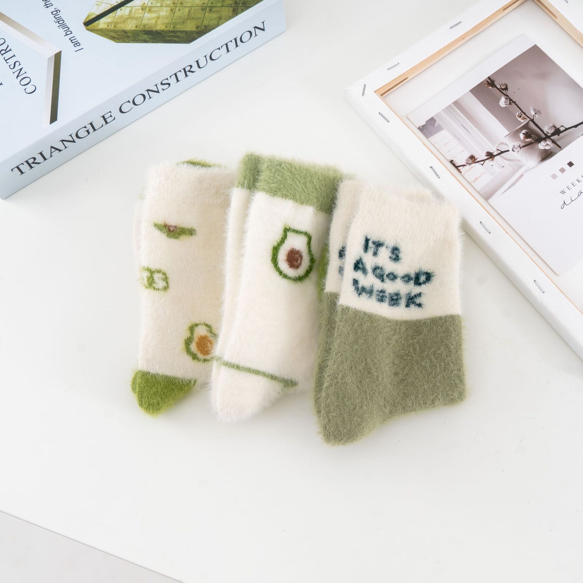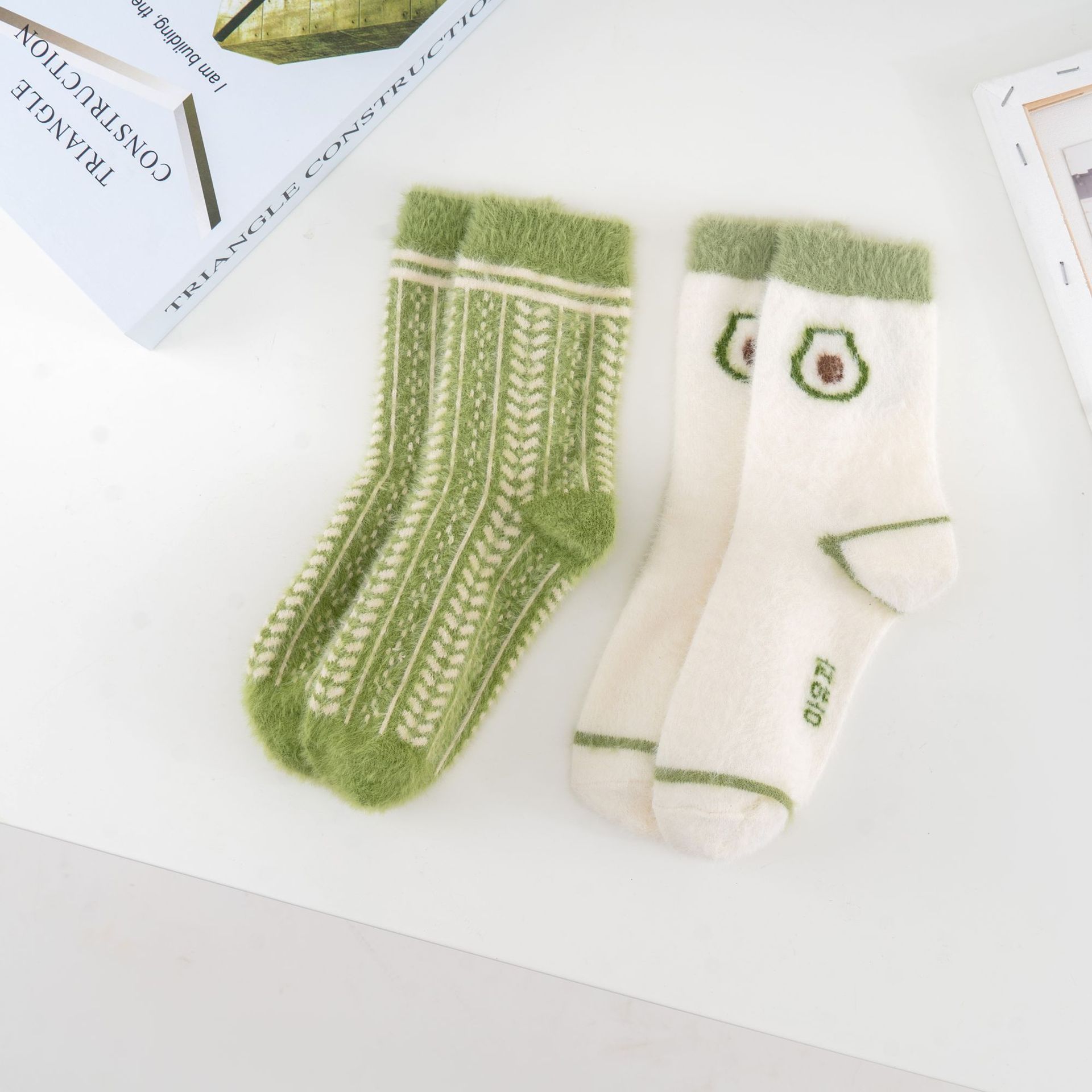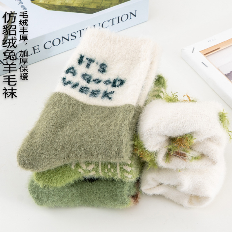 秋冬新品 袜子女中筒袜牛油果仿貂绒加厚保暖兔羊毛袜 亚马逊跨境