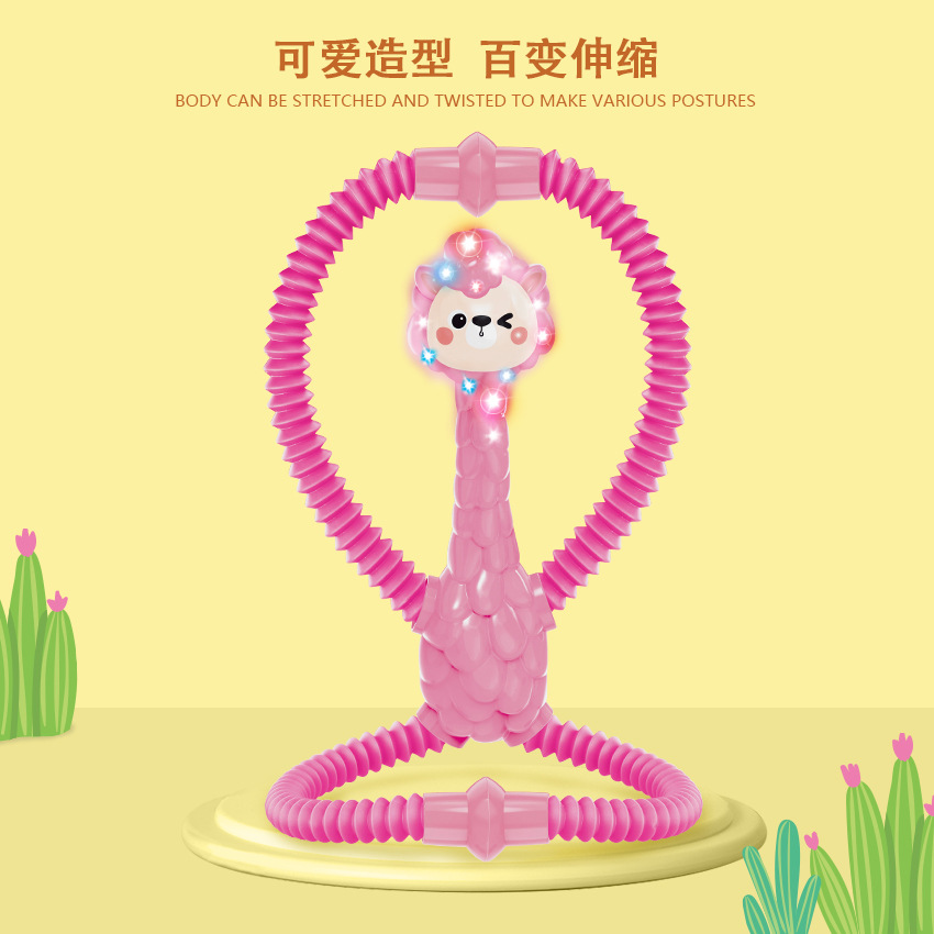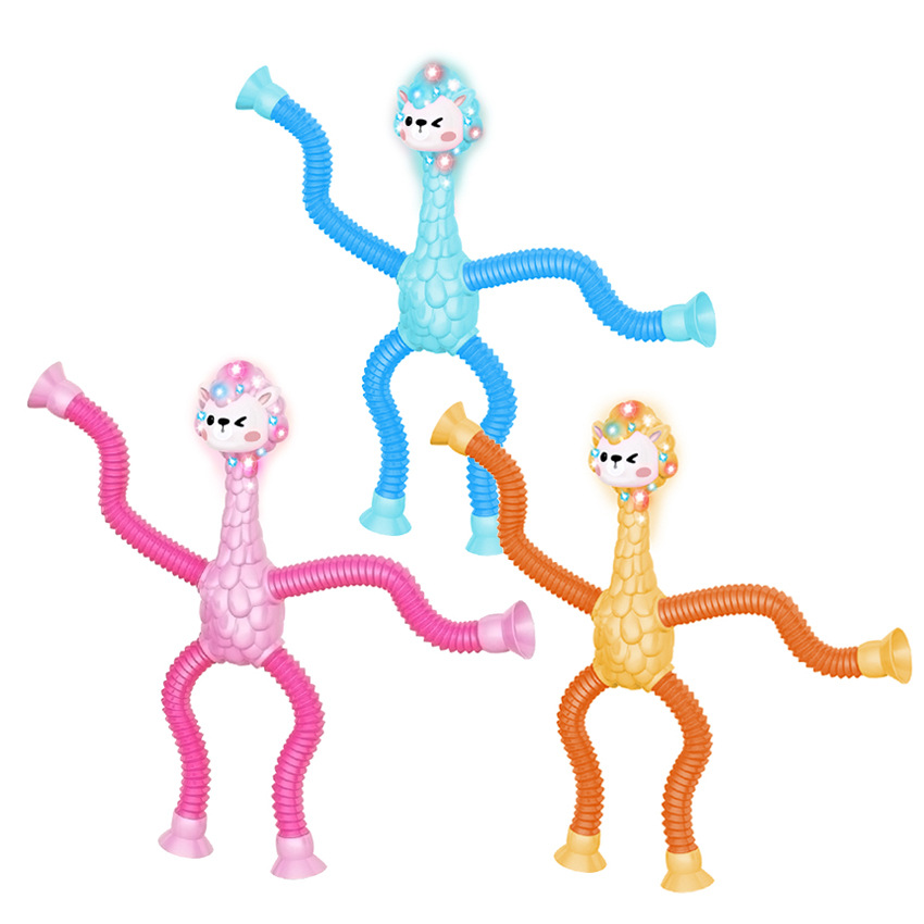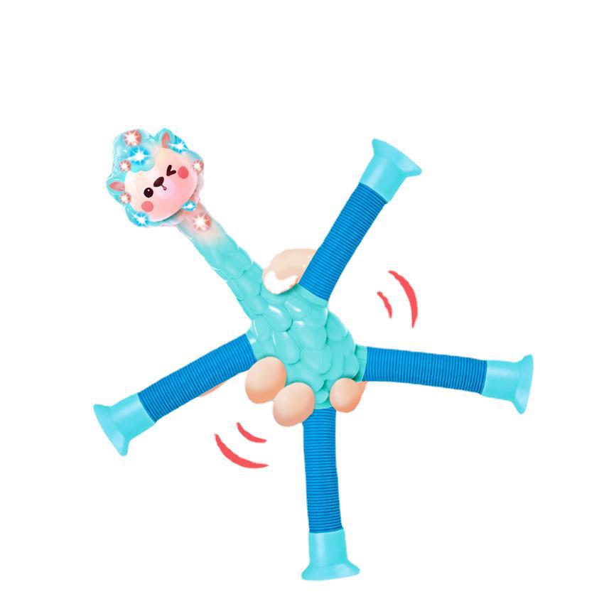 跨境动物拉拉管 儿童灯光解压百变吸盘羊驼长颈鹿减压伸缩管玩具