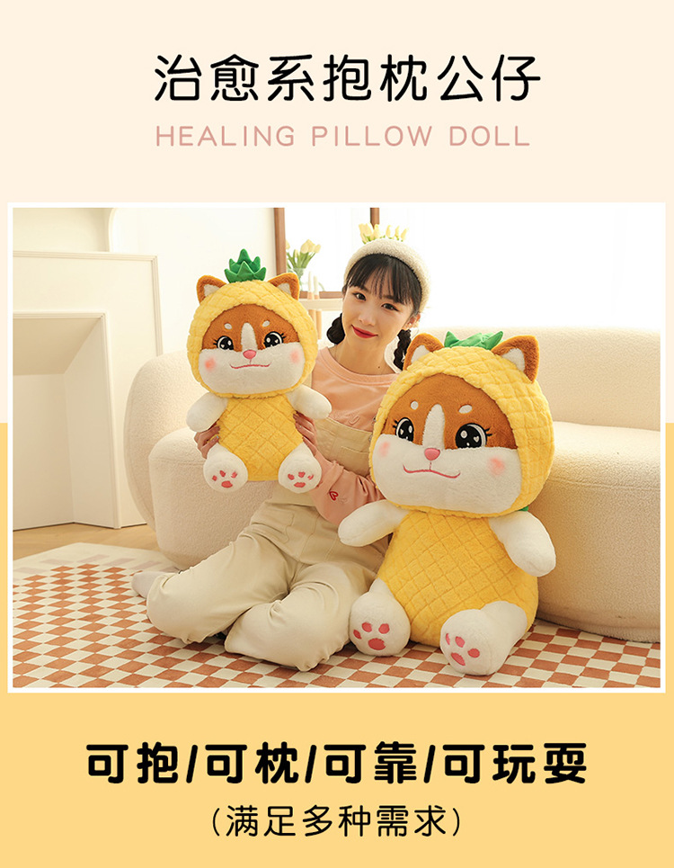 网红同款菠萝狗毛绒玩具公仔玩偶抱枕抓娃娃机女孩精品礼物