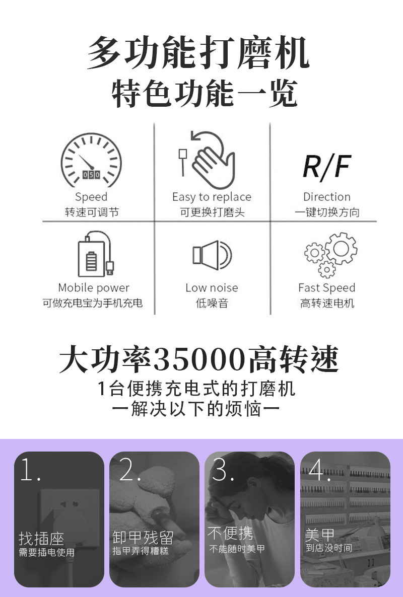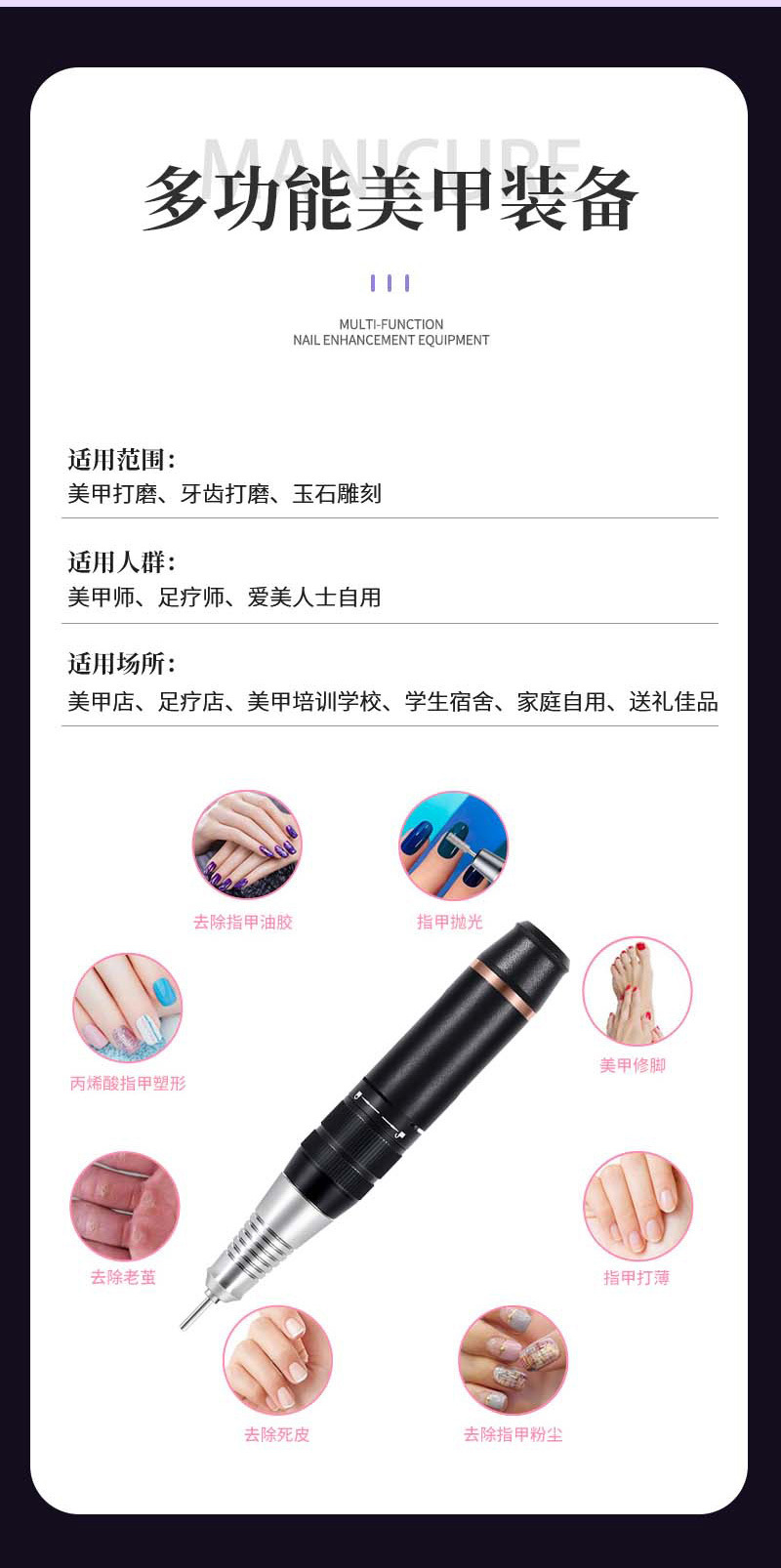 跨境新款美甲打磨机便携式美甲店专用打磨机去死皮卸甲电动磨甲器