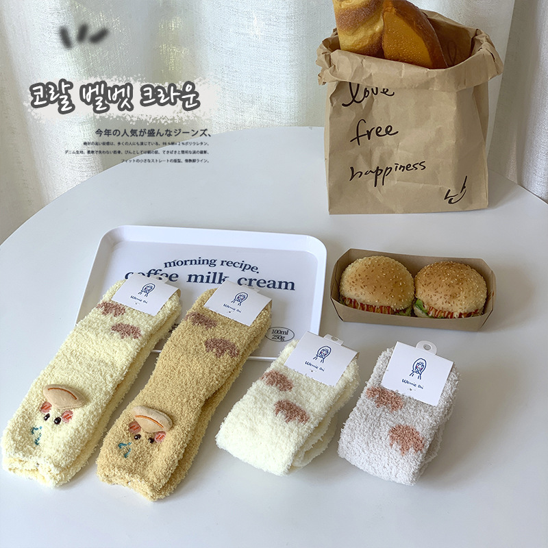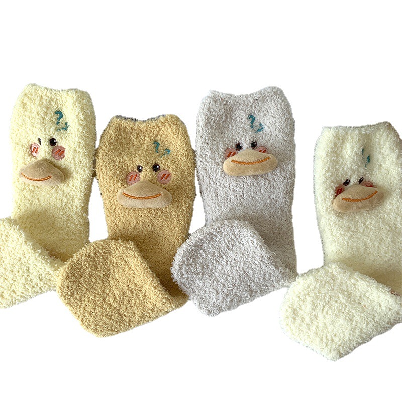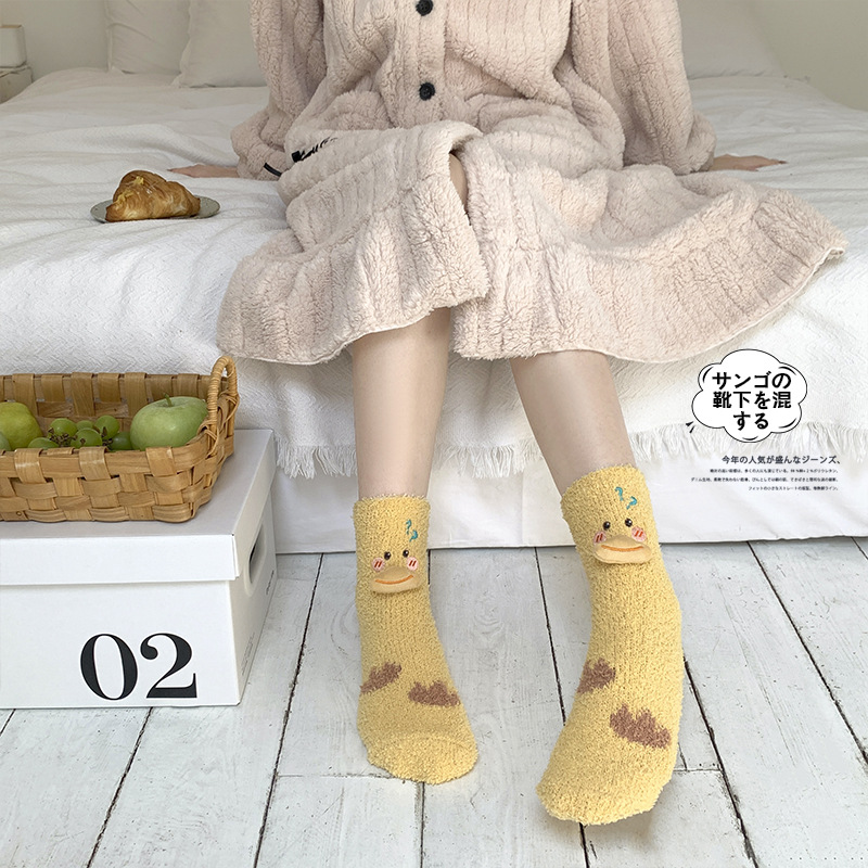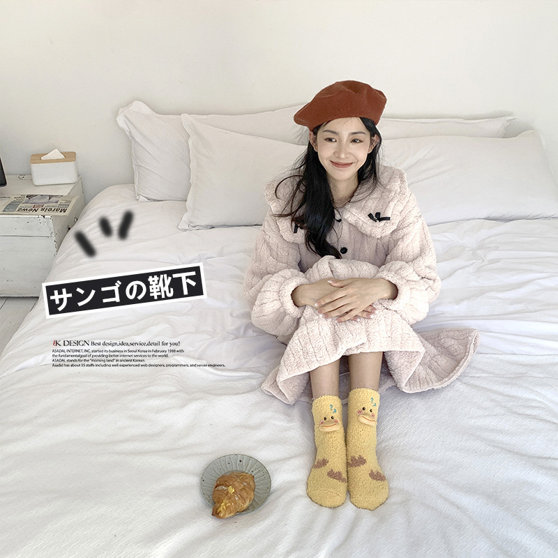 珊瑚绒袜子女可爱蝴蝶结女袜冬季加绒加厚月子睡眠袜诸暨厂家