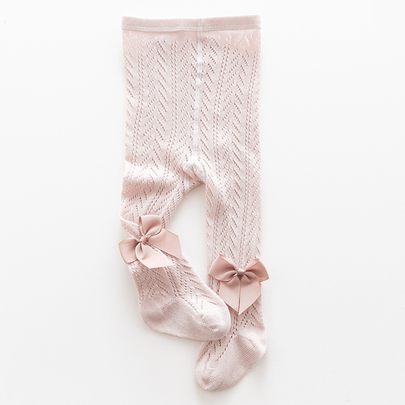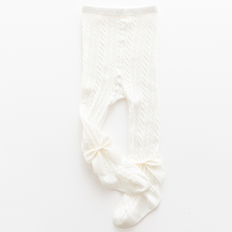 西班牙移圈镂空蝴蝶结女宝婴儿宝宝白色打底连裤袜春夏薄款0-2岁