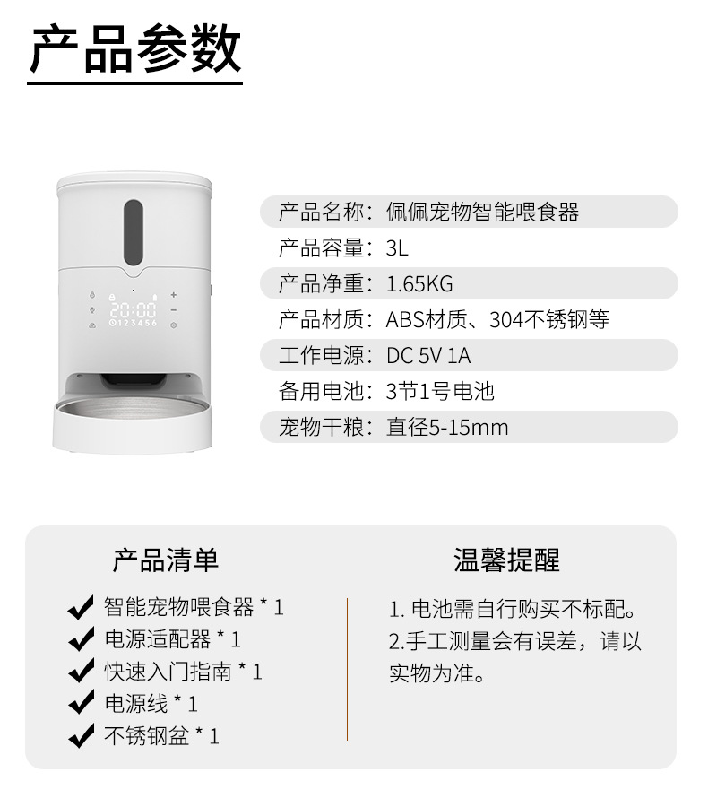 3L宠物喂食器智能按键款WI-FI款猫咪狗喂食碗定时定量喂食器