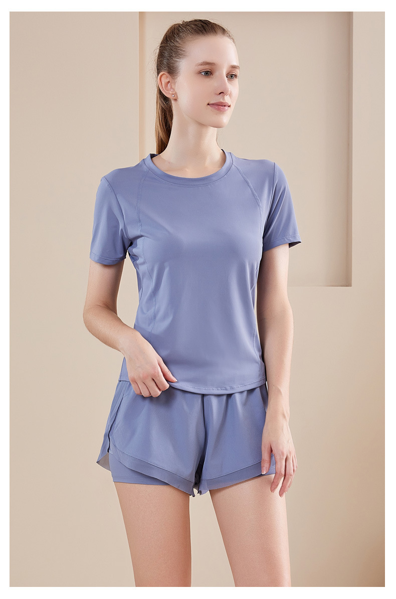 夏季女士短袖瑜伽服薄款性感短裤健身服户外速干跑步运动套装定制