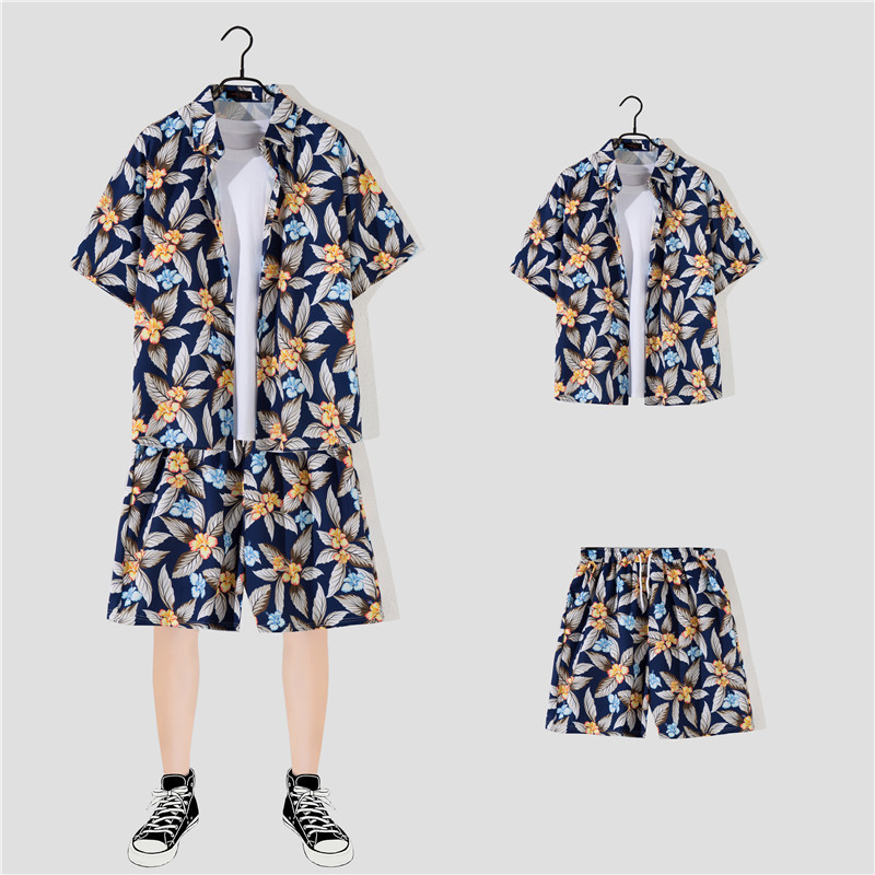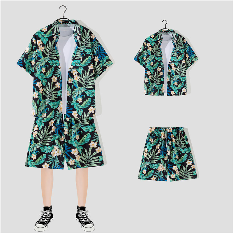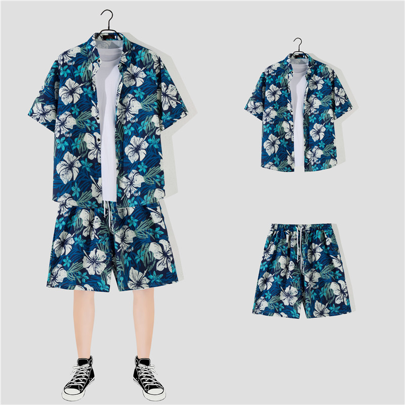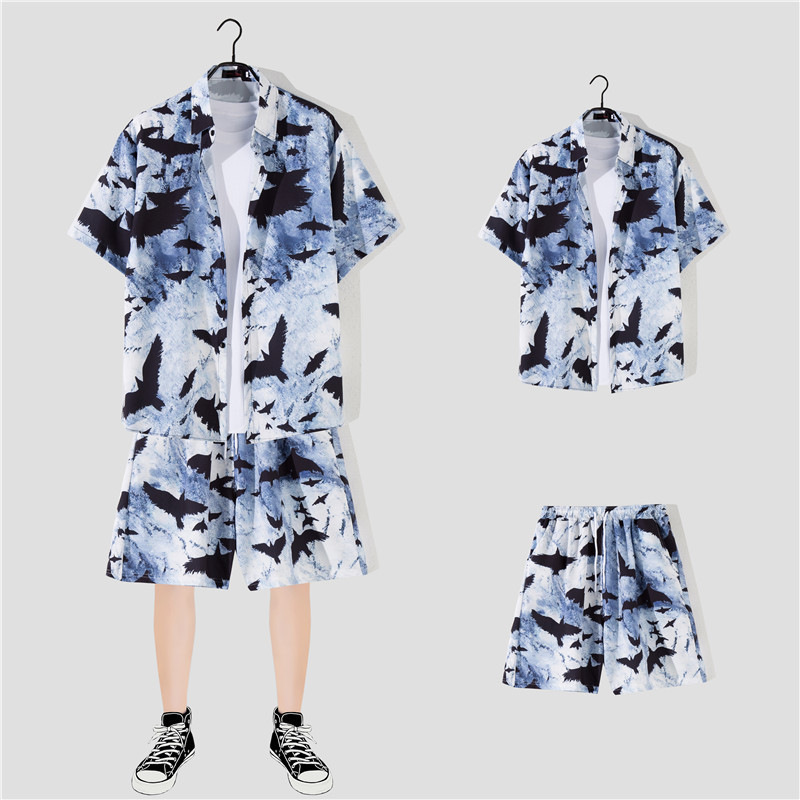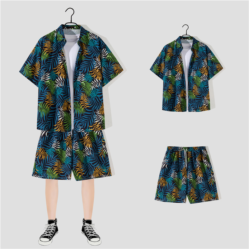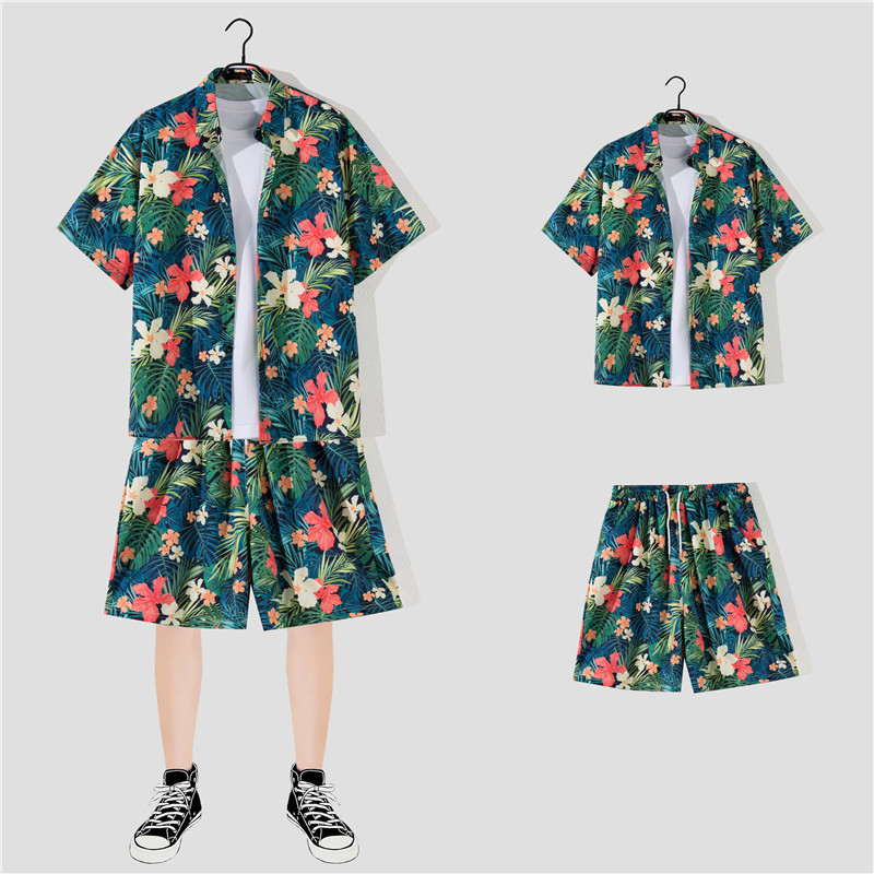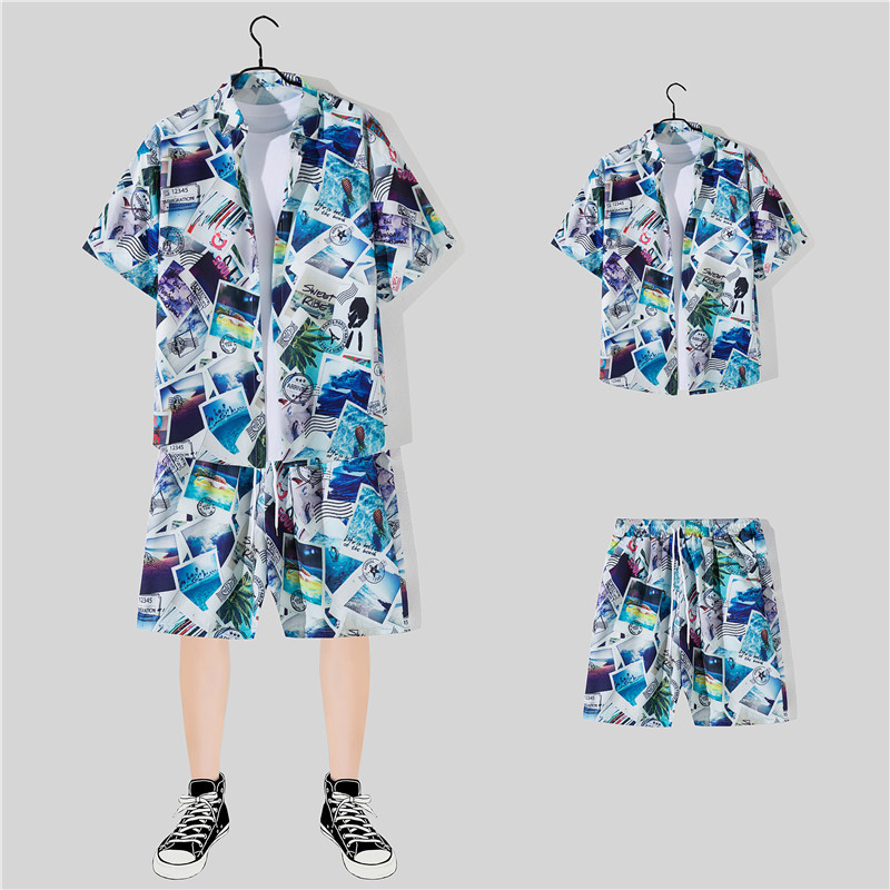 两件衬衫套装合集外贸大码短袖衬衫印花衬衫男夏季新款衬衣速卖通