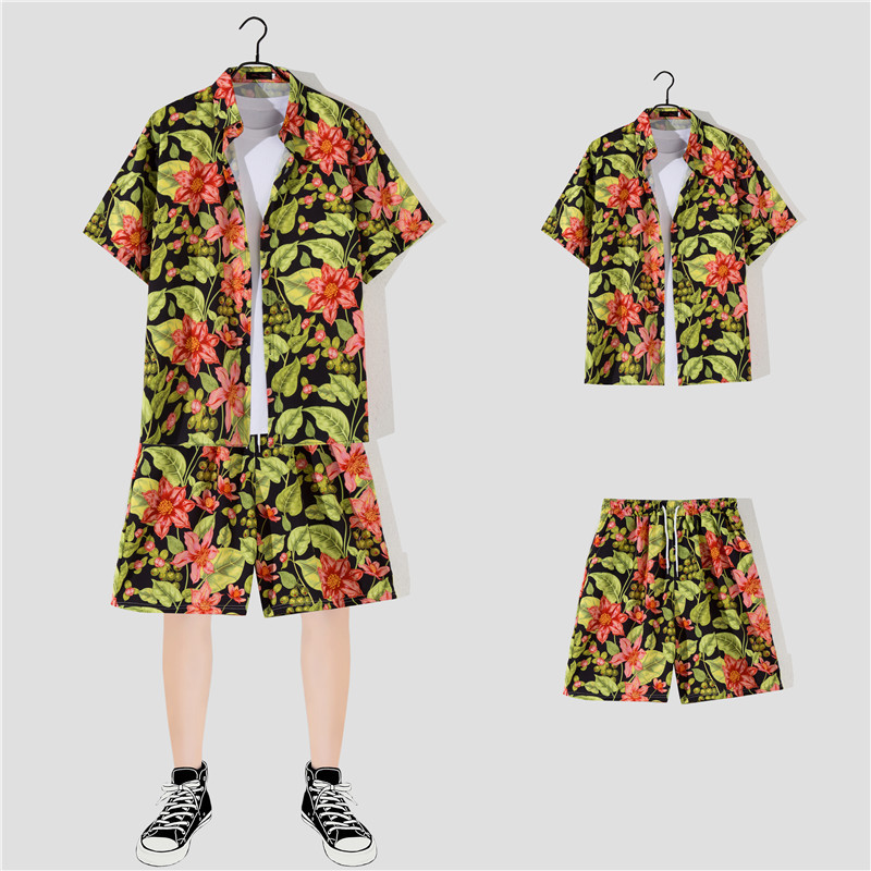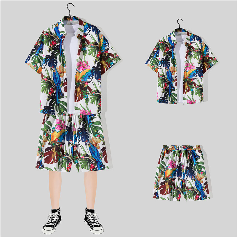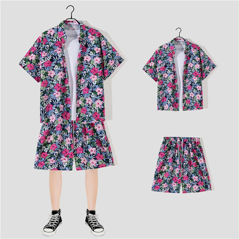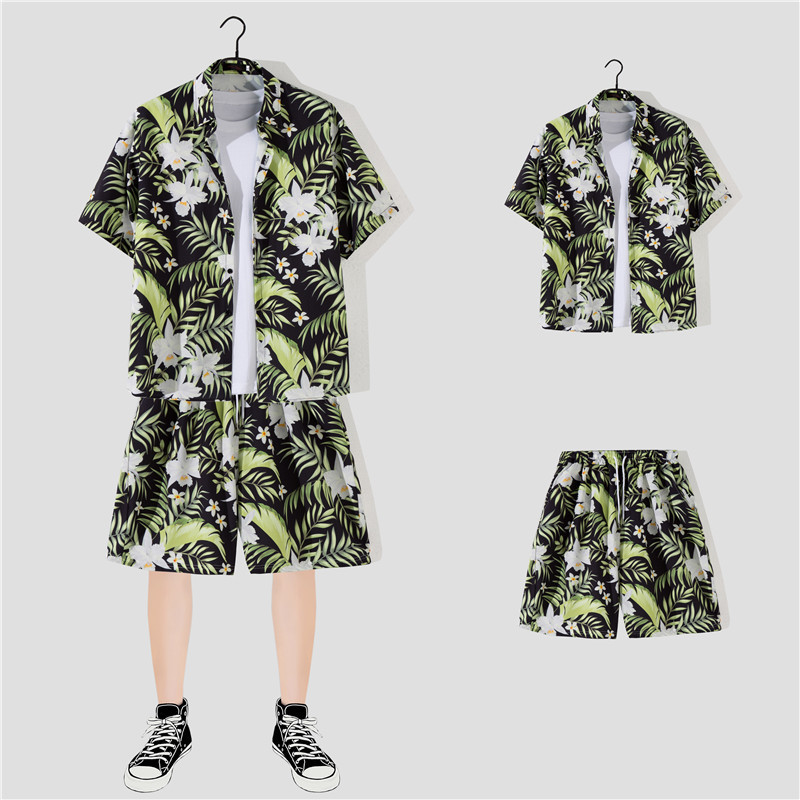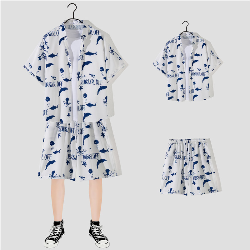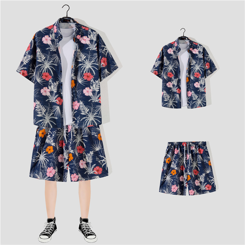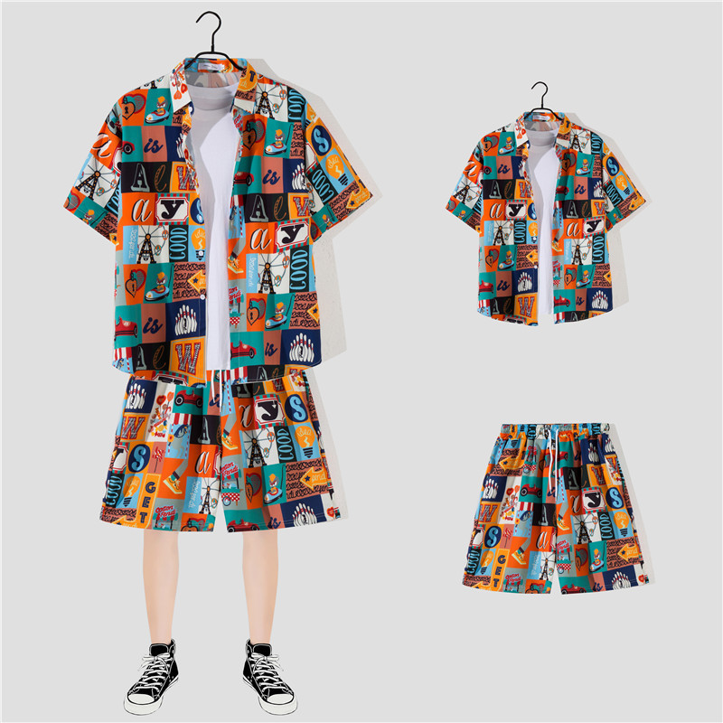 两件衬衫套装合集外贸大码短袖衬衫印花衬衫男夏季新款衬衣速卖通